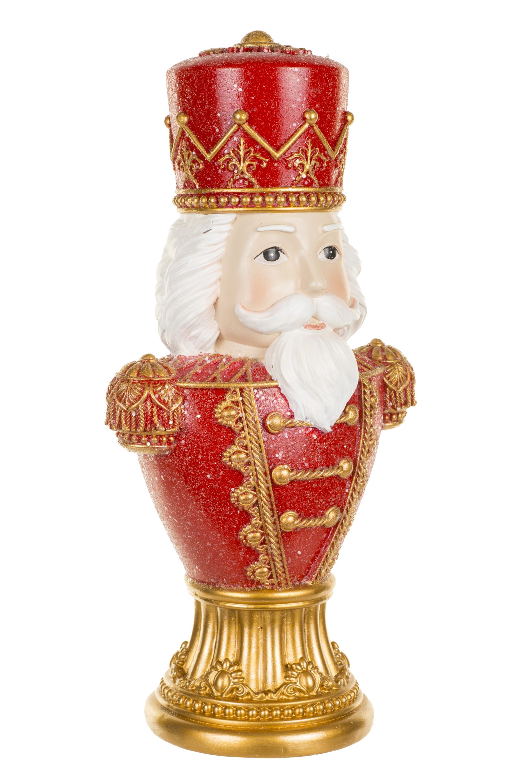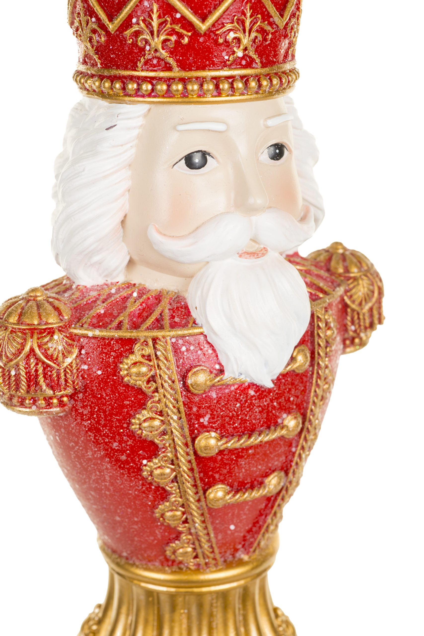 • Description: 9.5" Glittery Red and Gold Polyresin Nutcracker General Table-Topper on Ornamental Stand