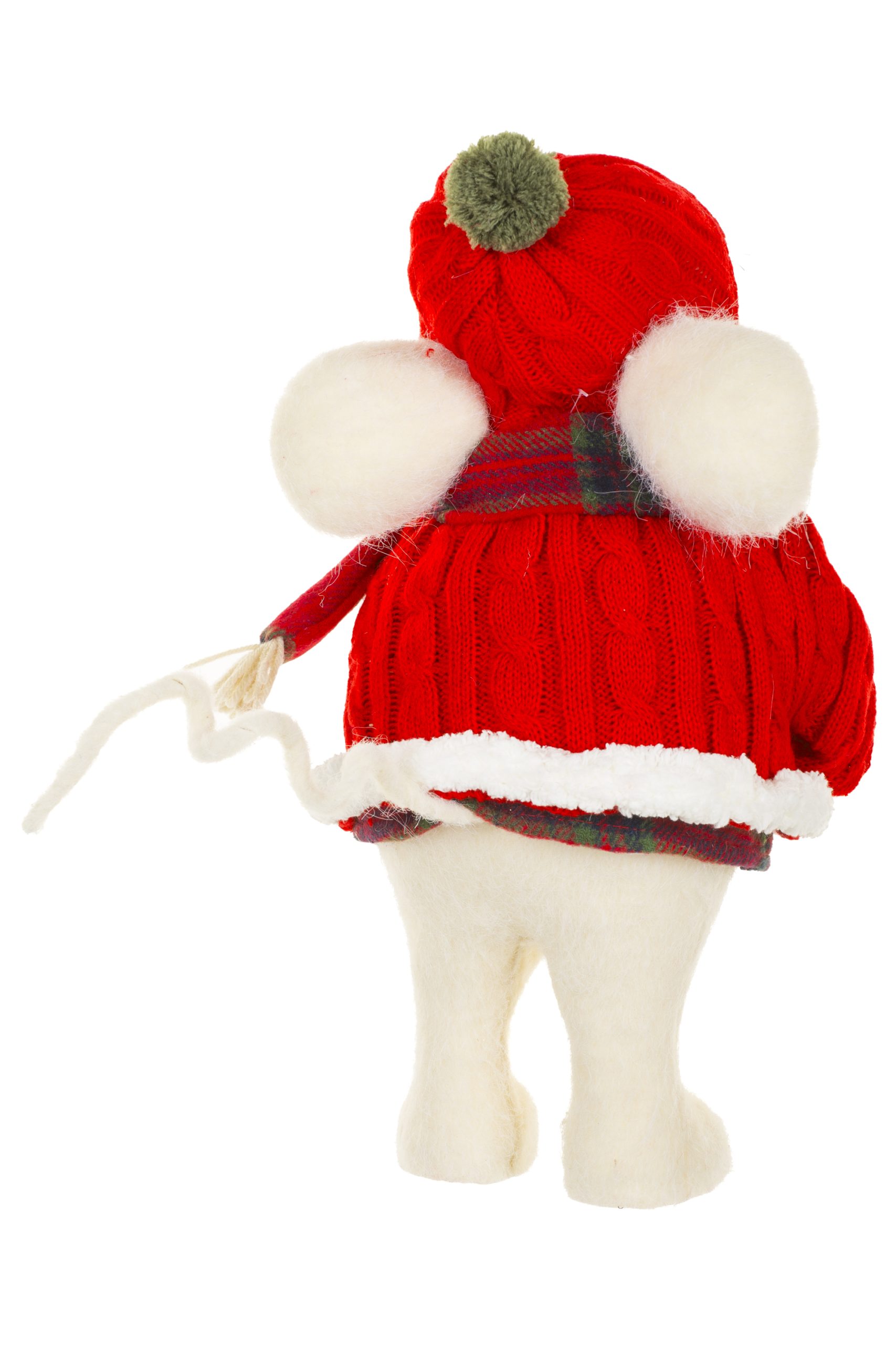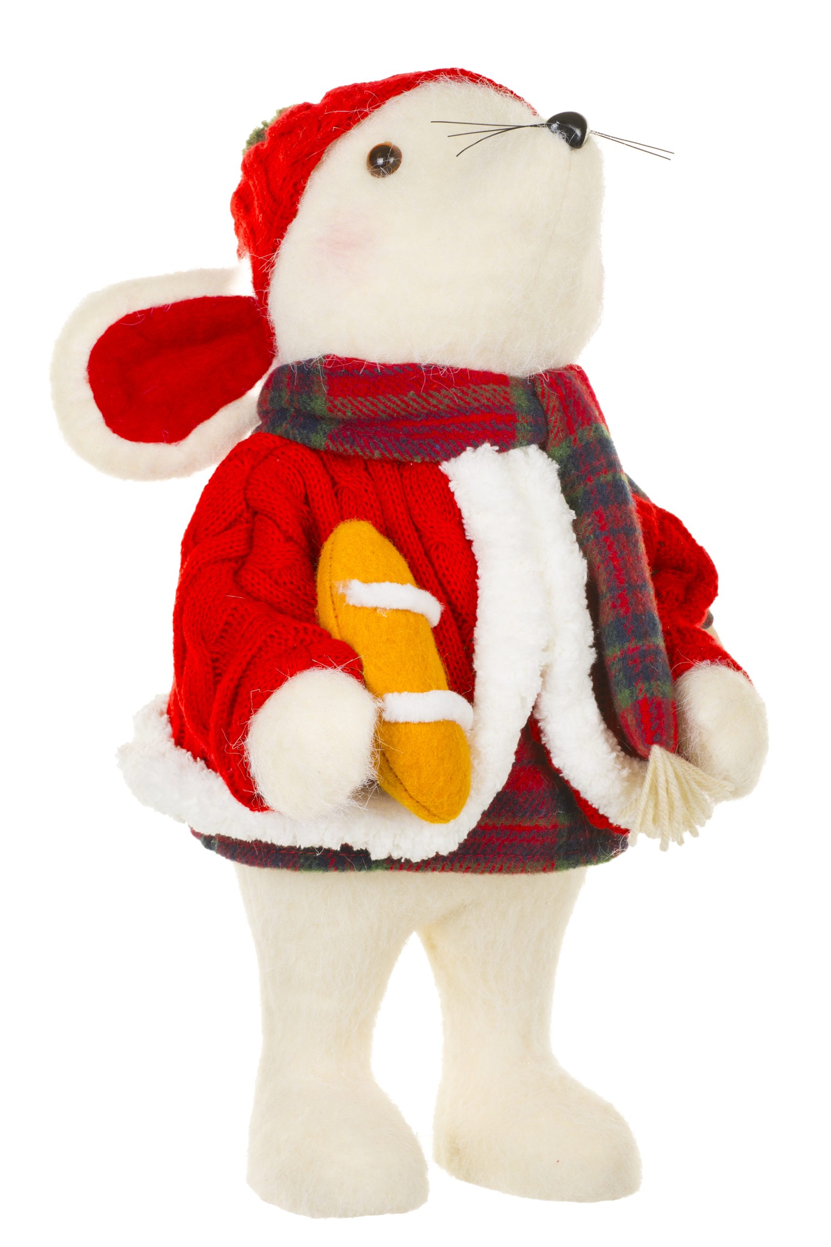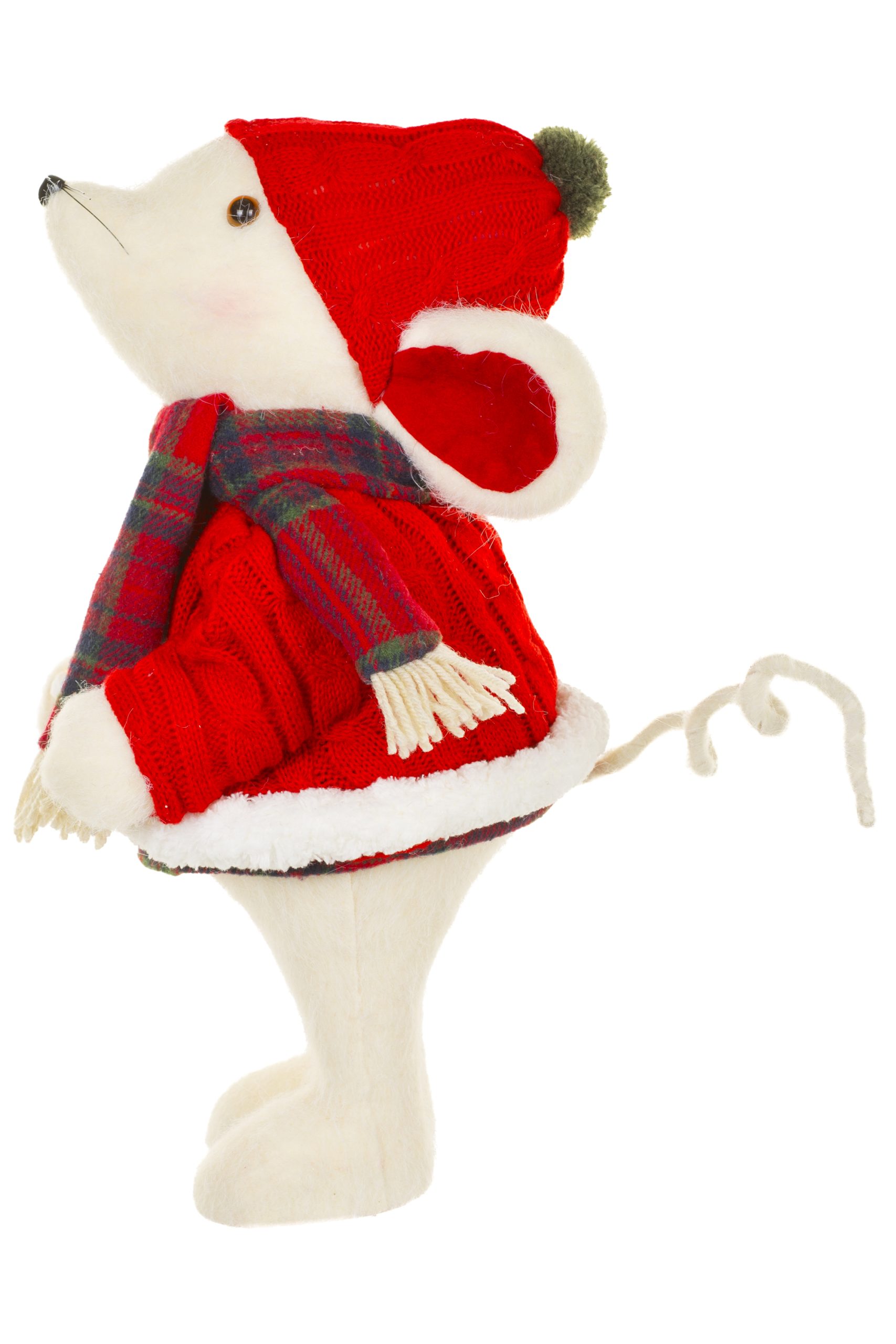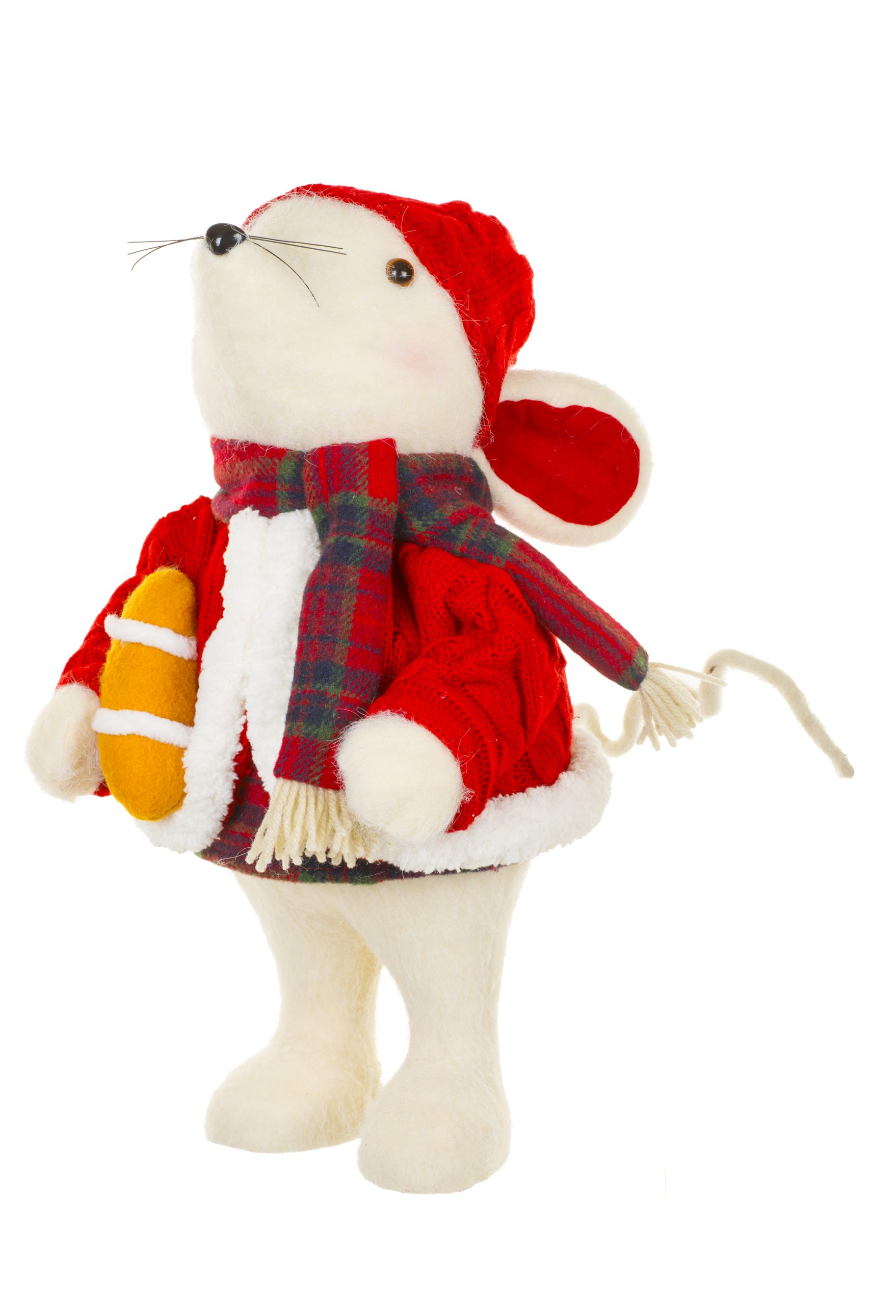 • Description: 14.6" Plaid Red and White Fabric Precious Mouse Figurine with Pastry
