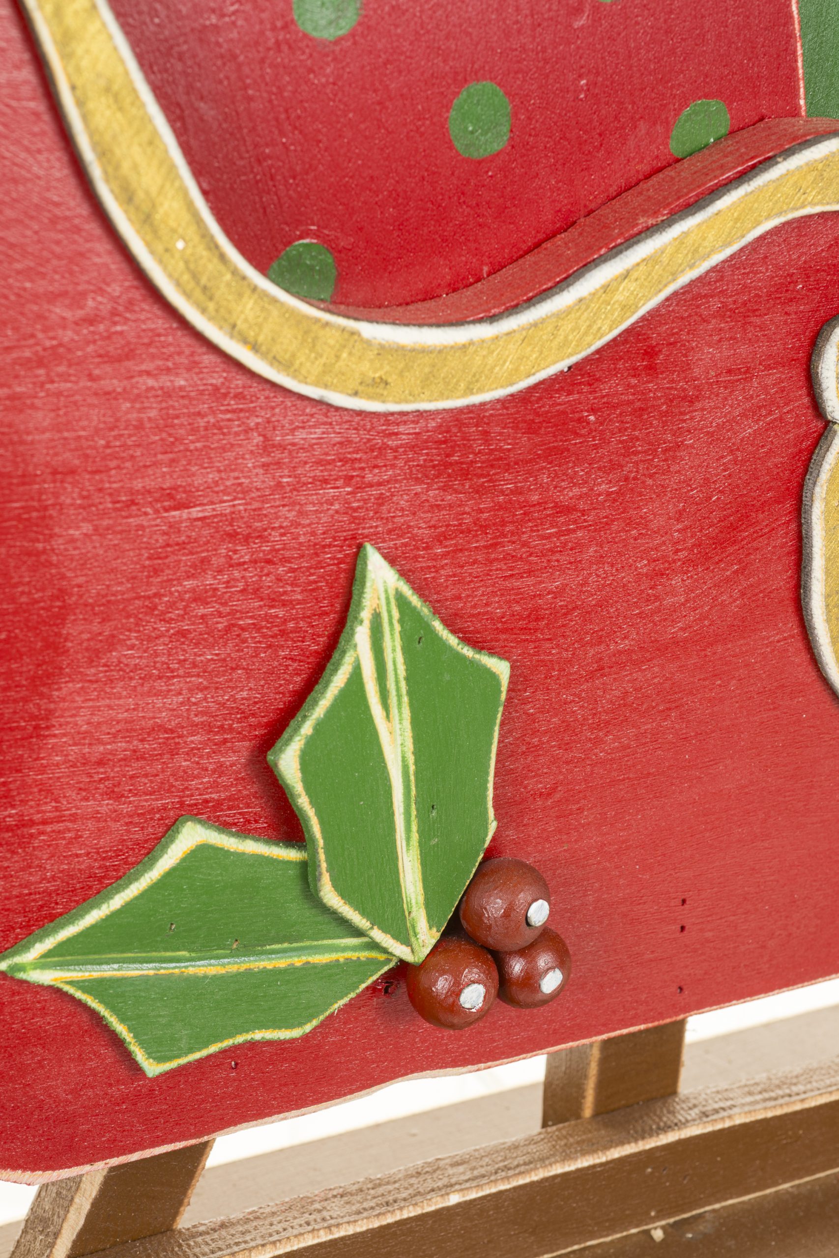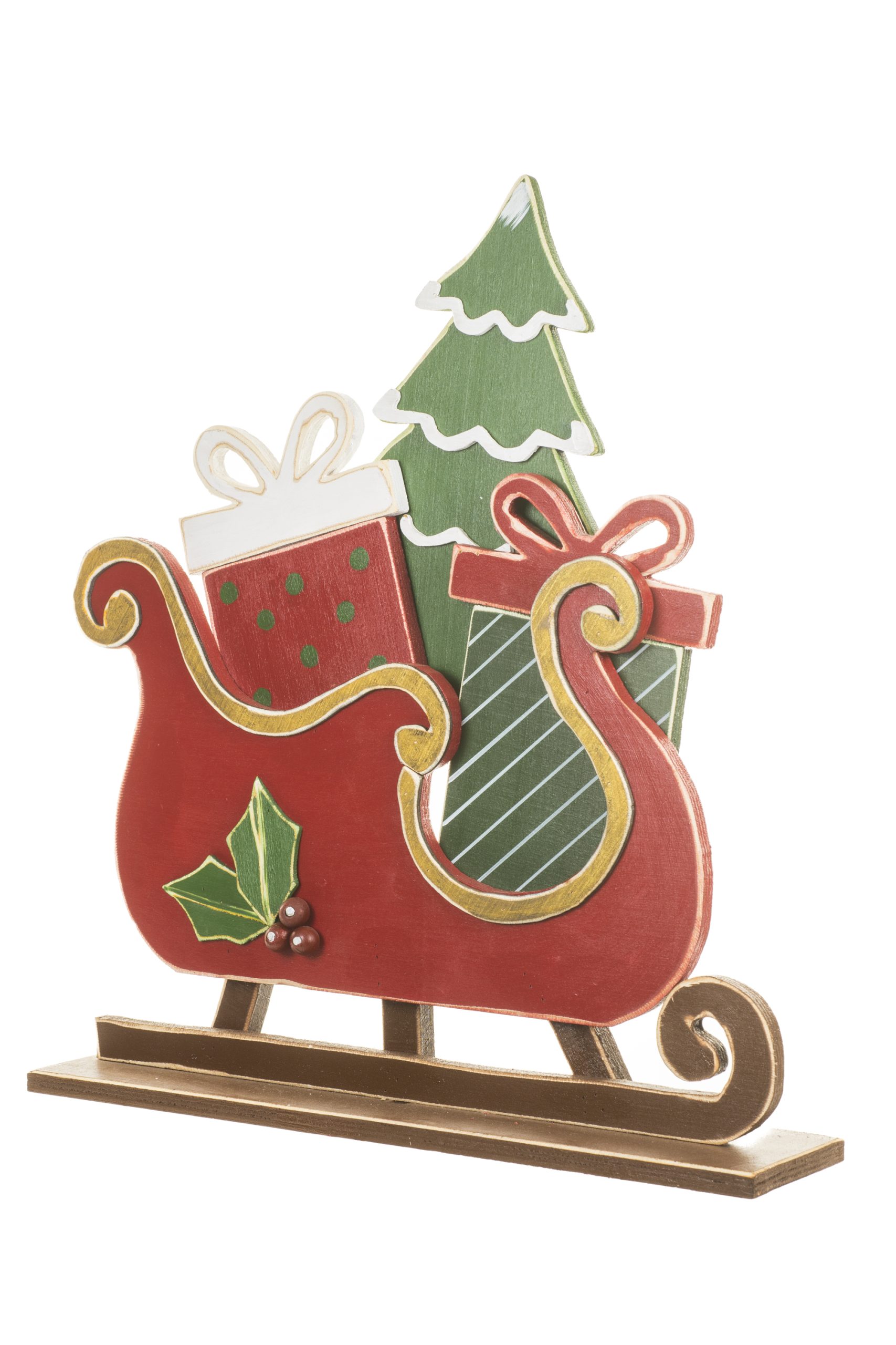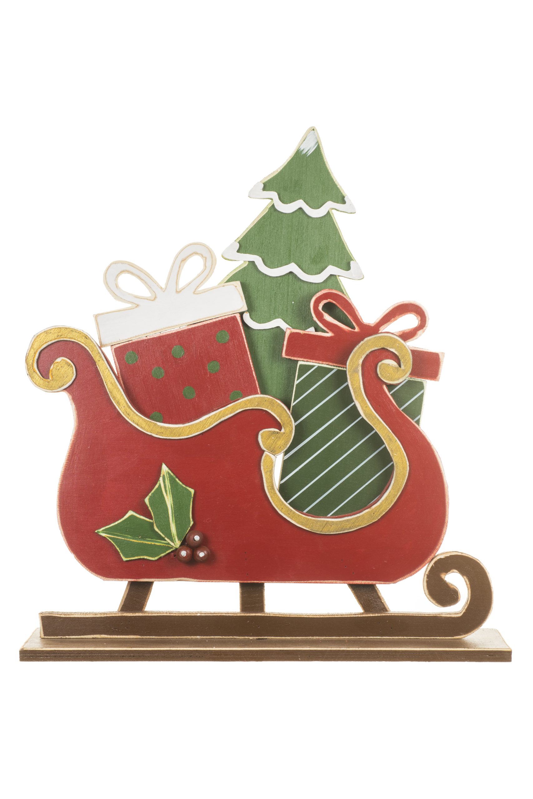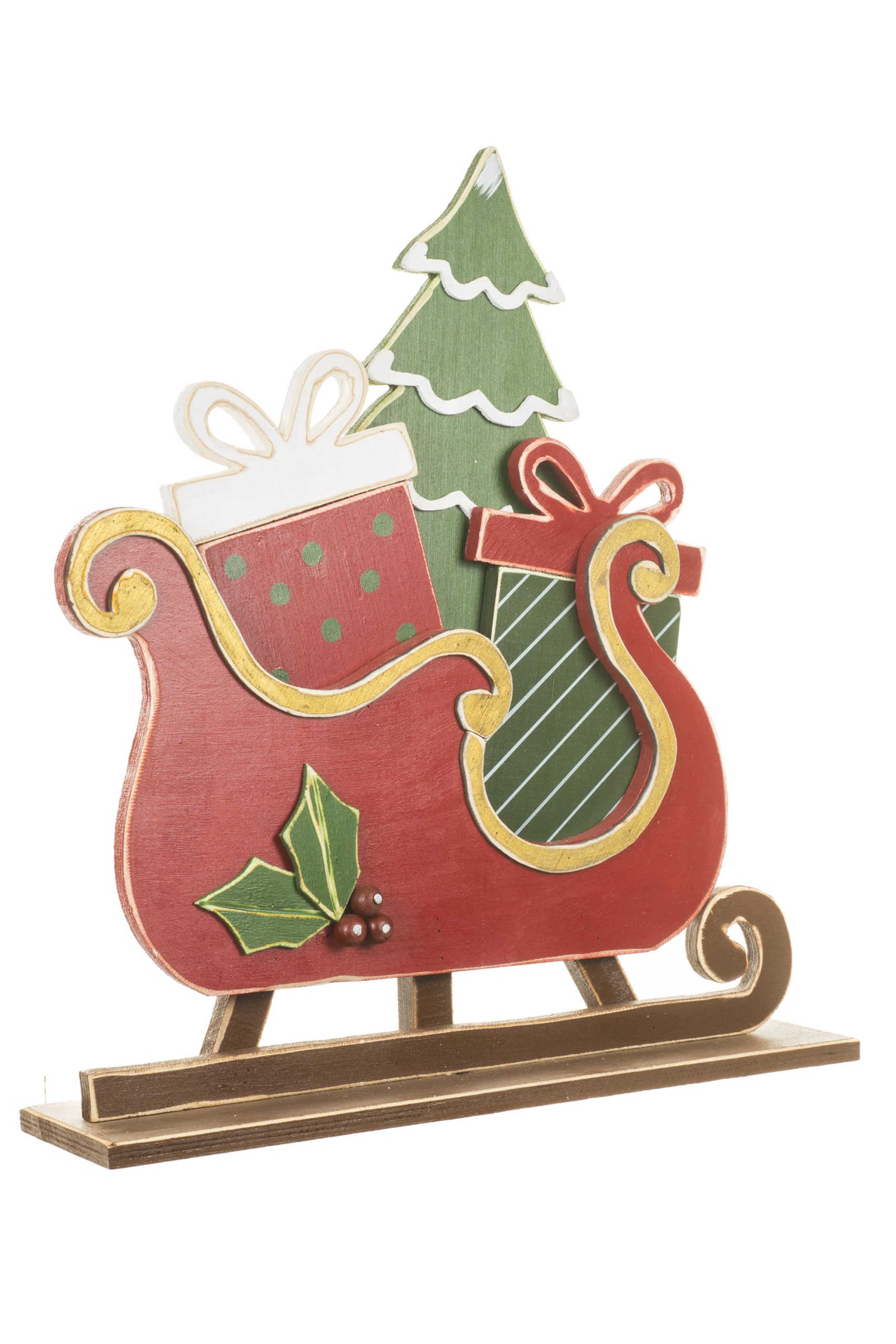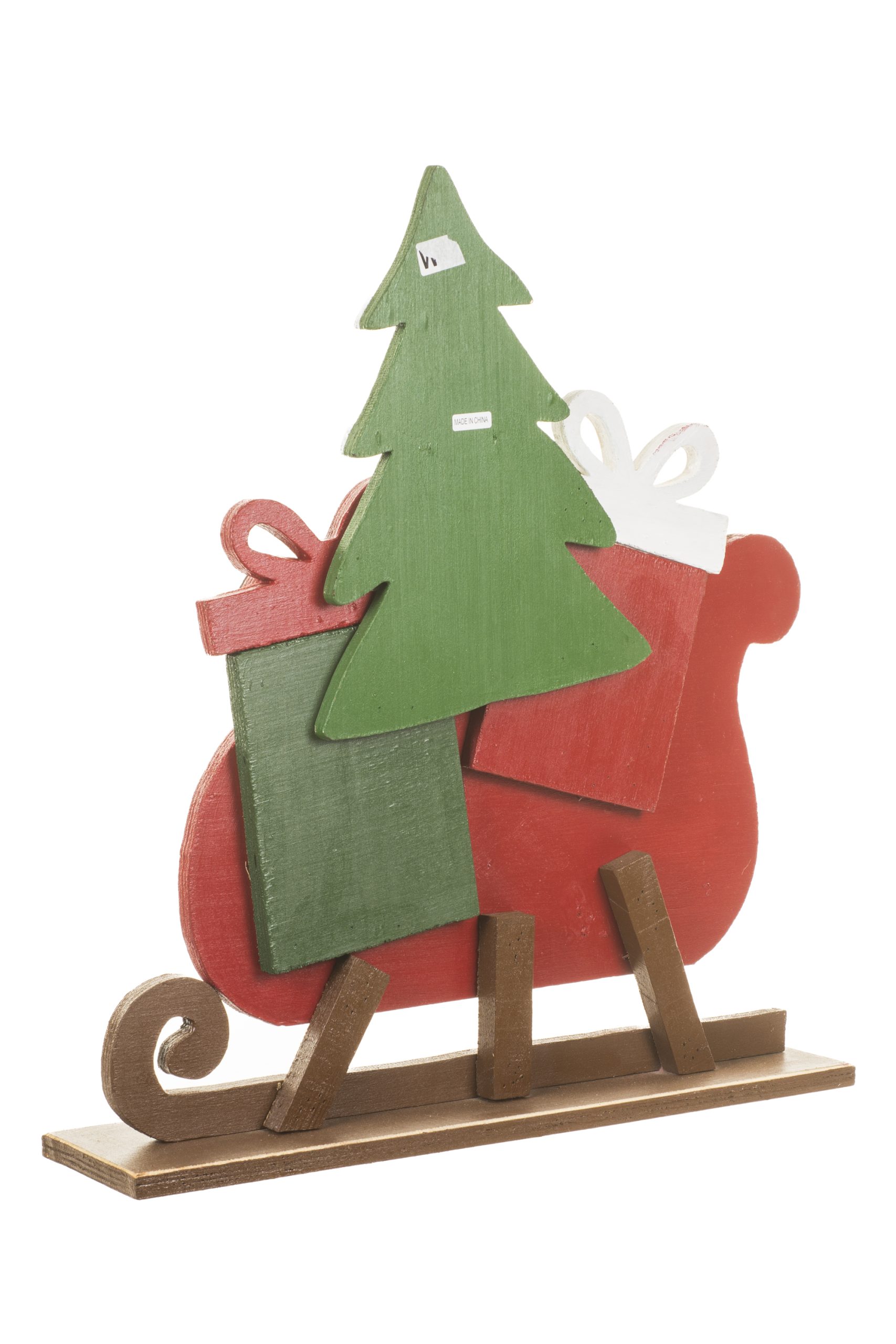 • Description: 24.02" Red Wooden Sleigh Display Figure with Presents & Tree