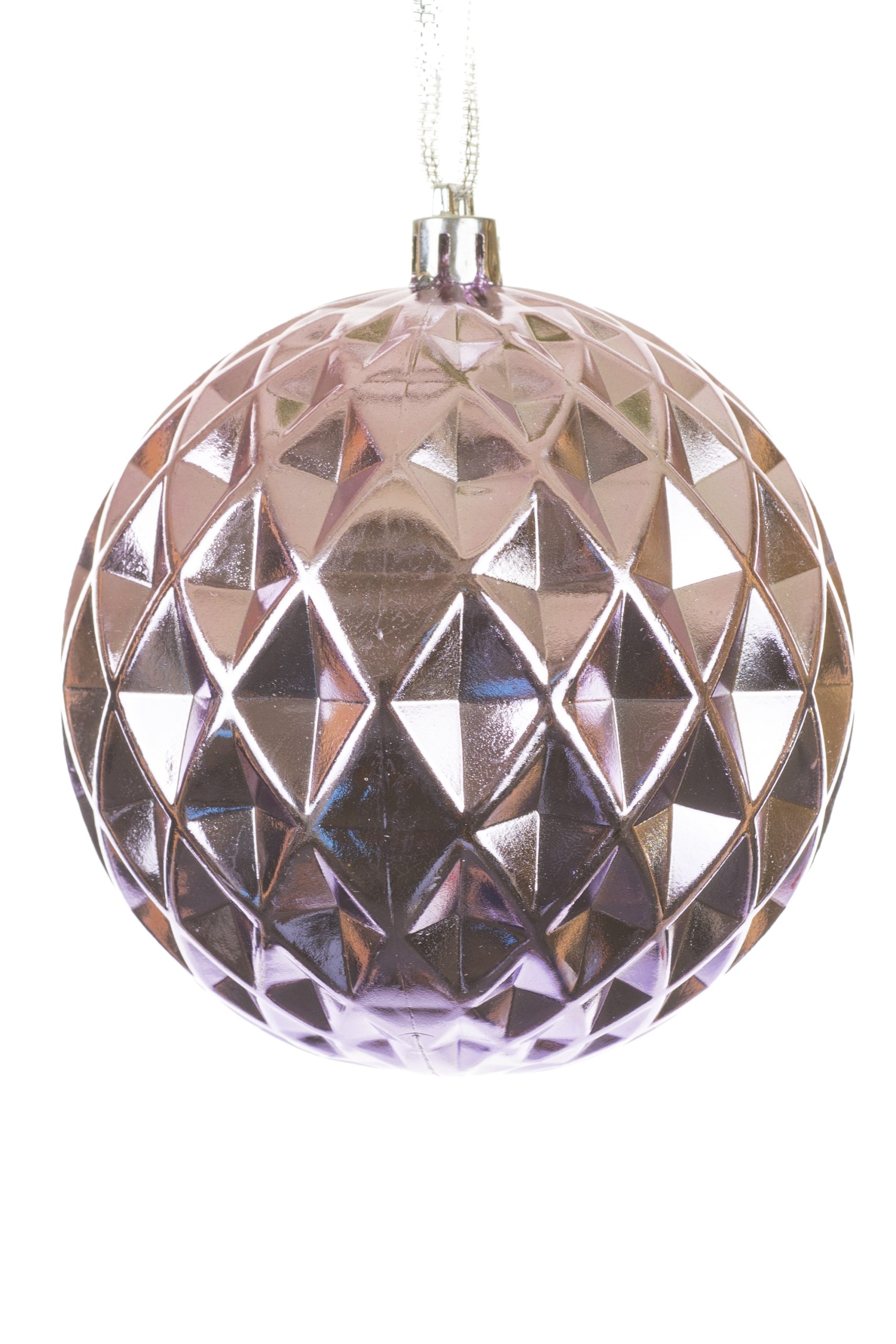 • Description: 4.5" Rose Gold and Metallic Mauve Plastic Ball Ornament