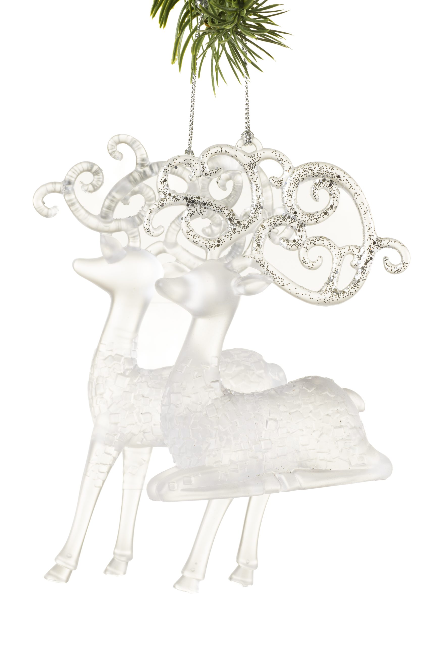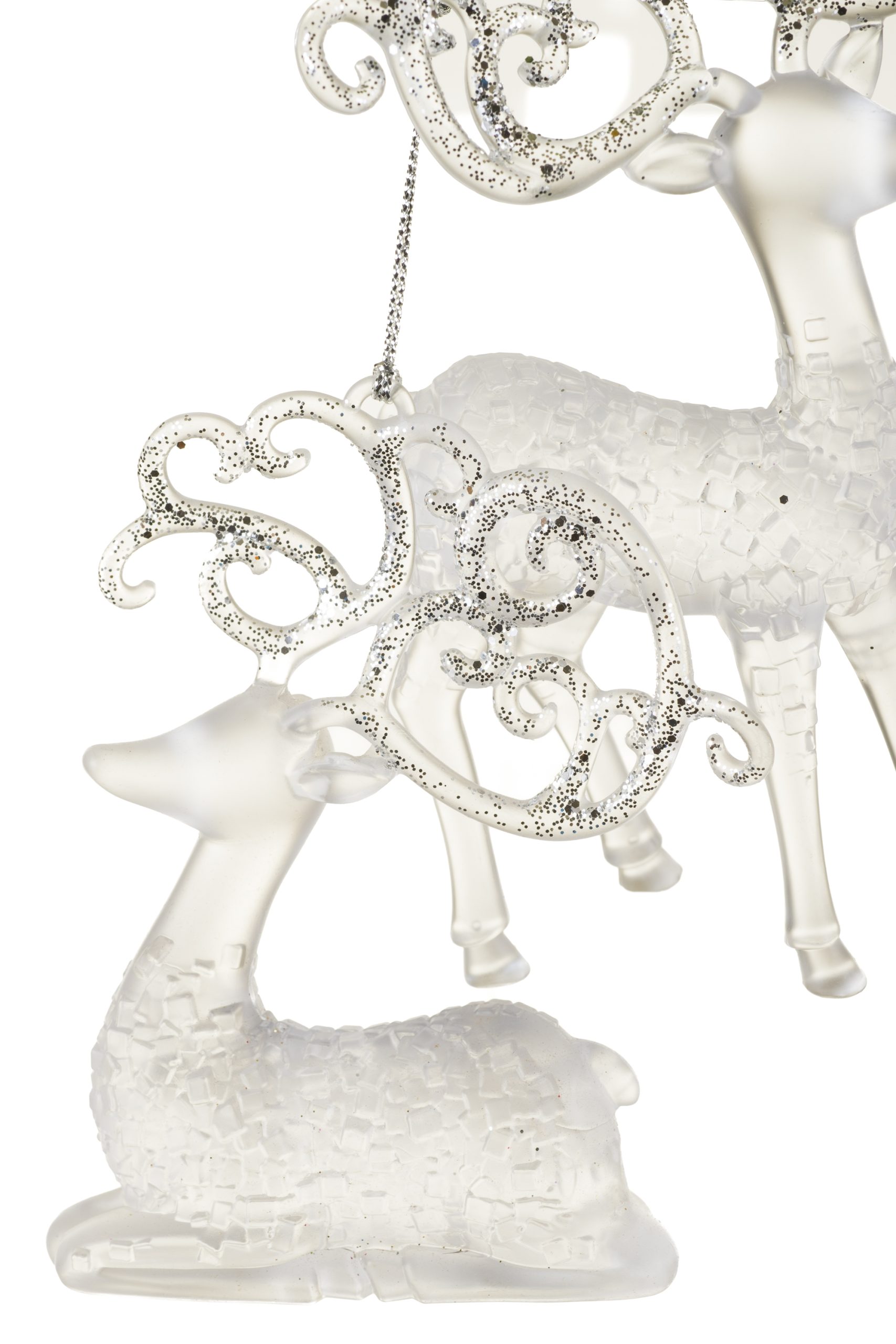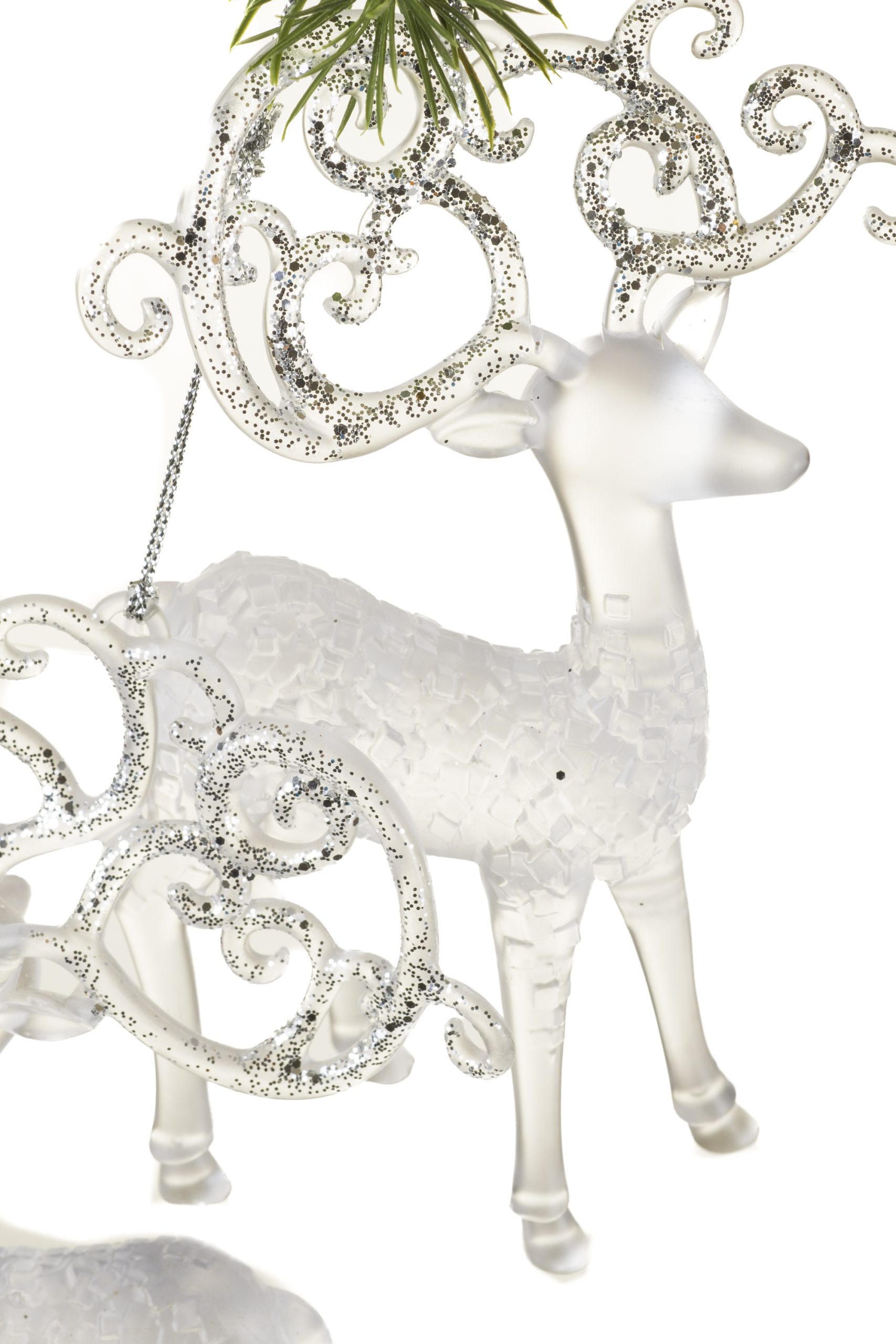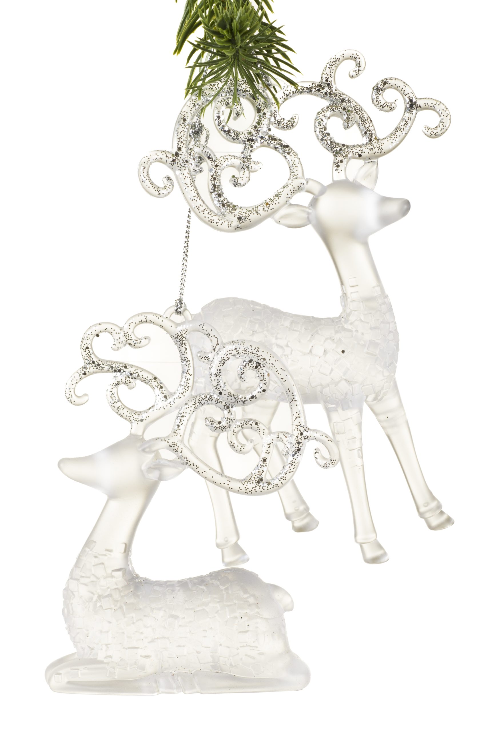 • Description: 5.5" Set Of Two Frosted Hanging Clear Glass Deer Ornament with Silver Glitter Antlers