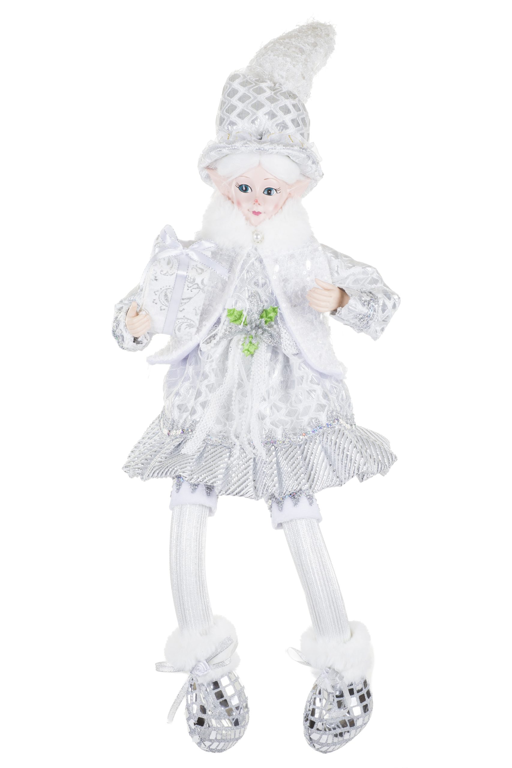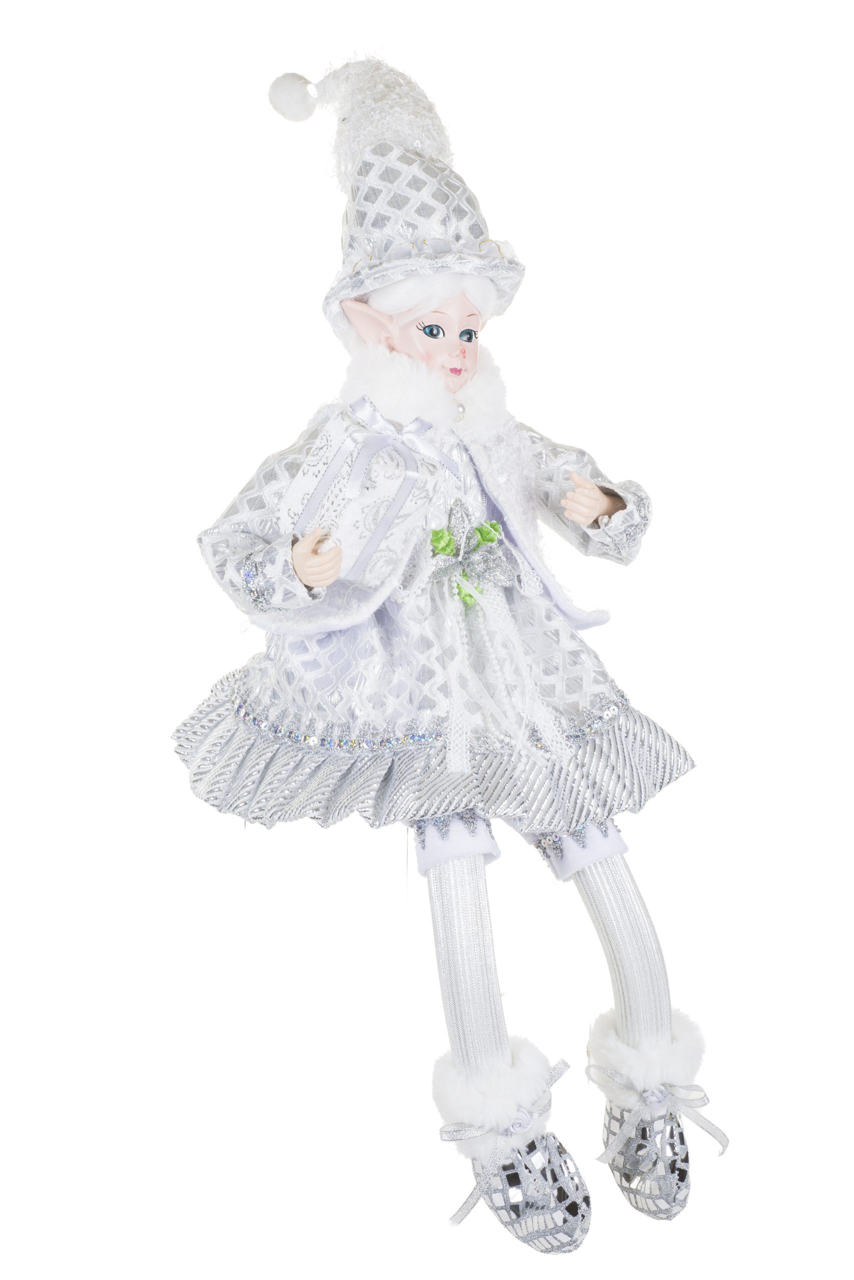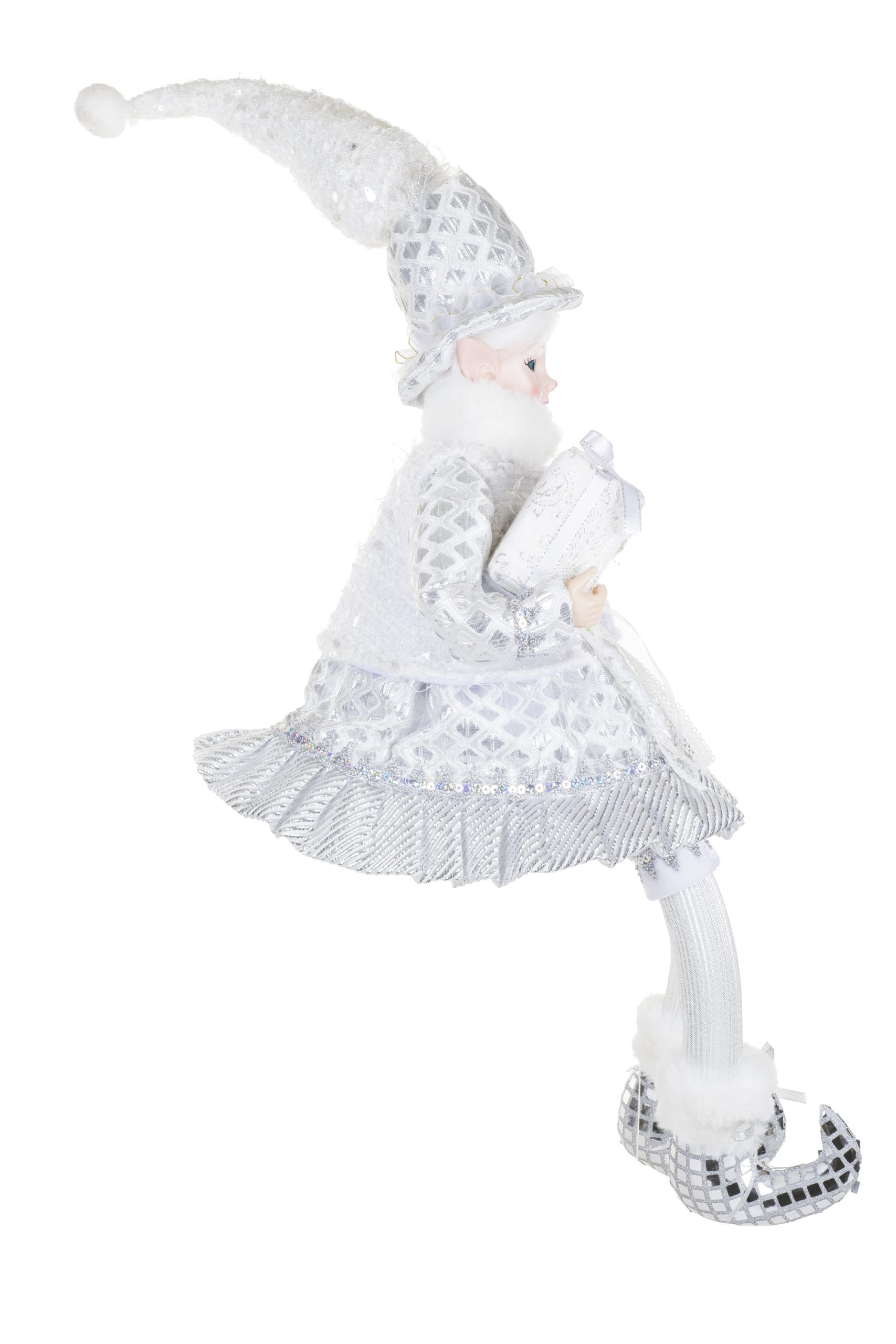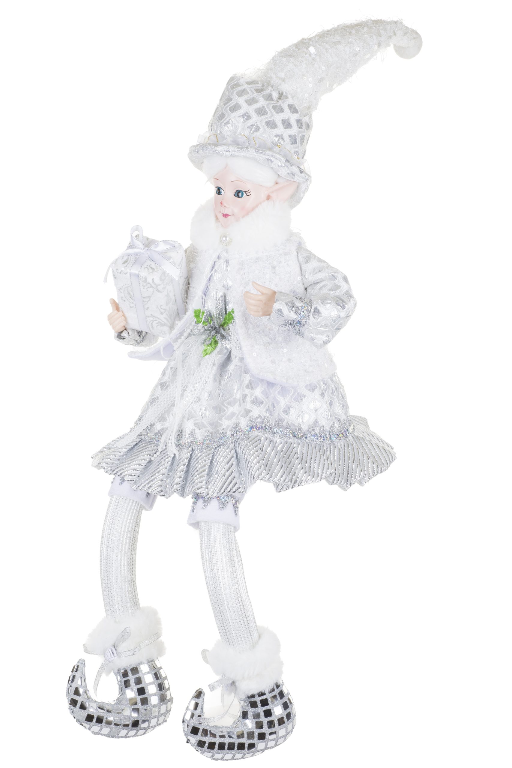 • Description: 25" Set Of Two Sitting Sparkly Silver and White Fabric Elf Figurines