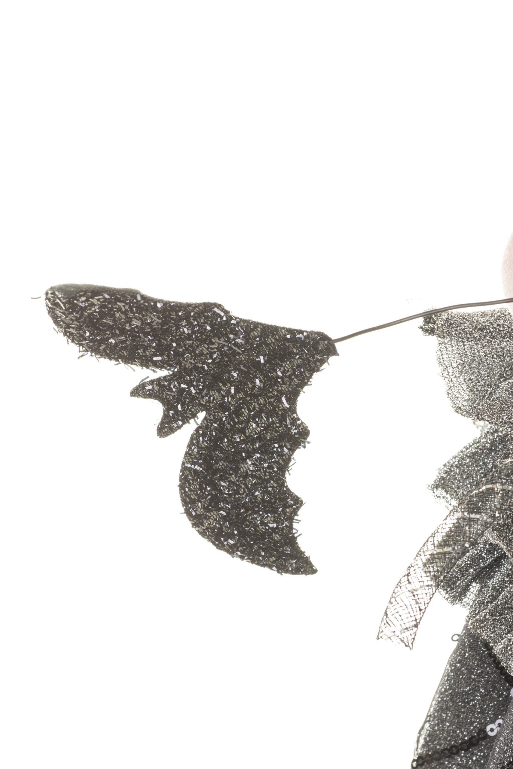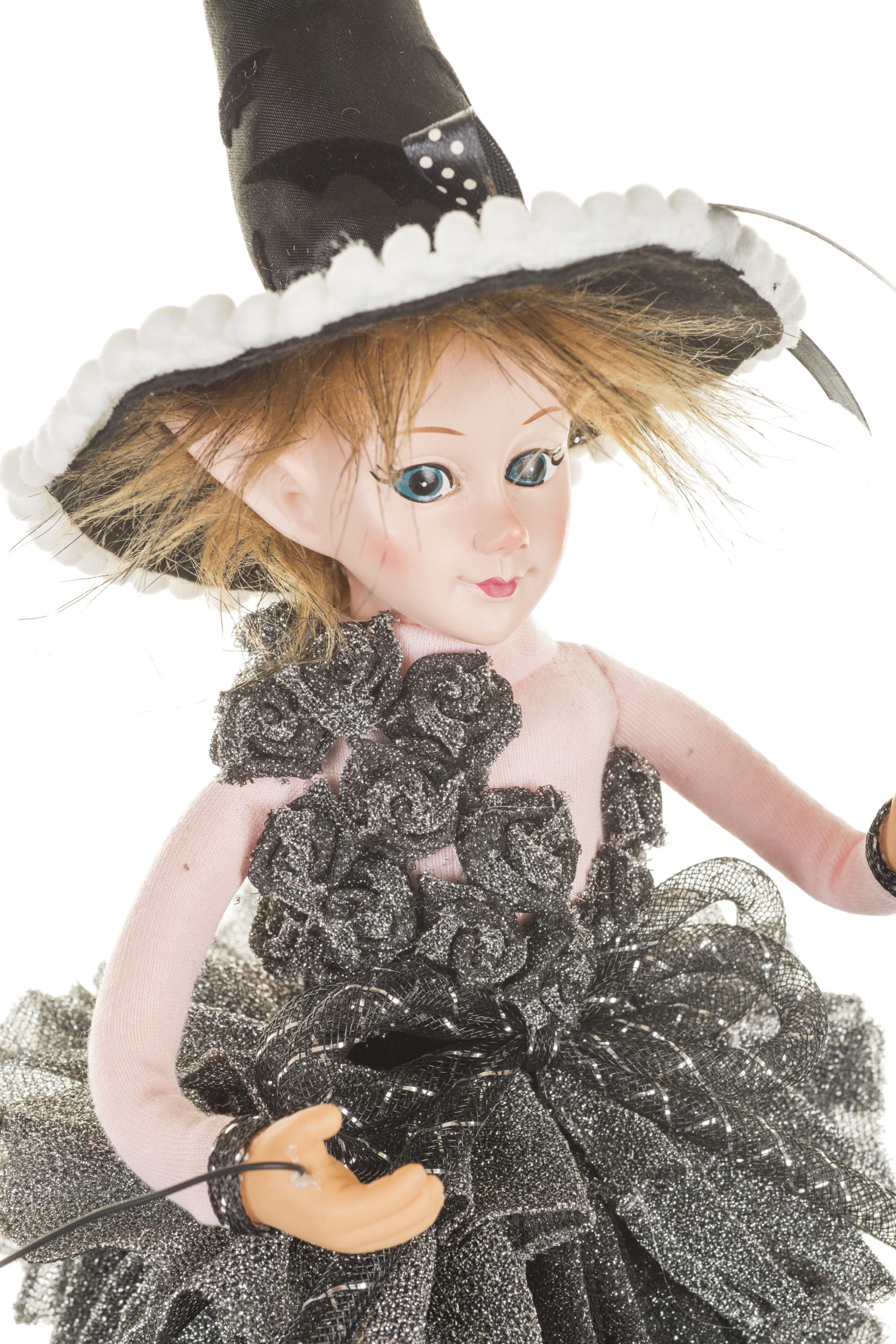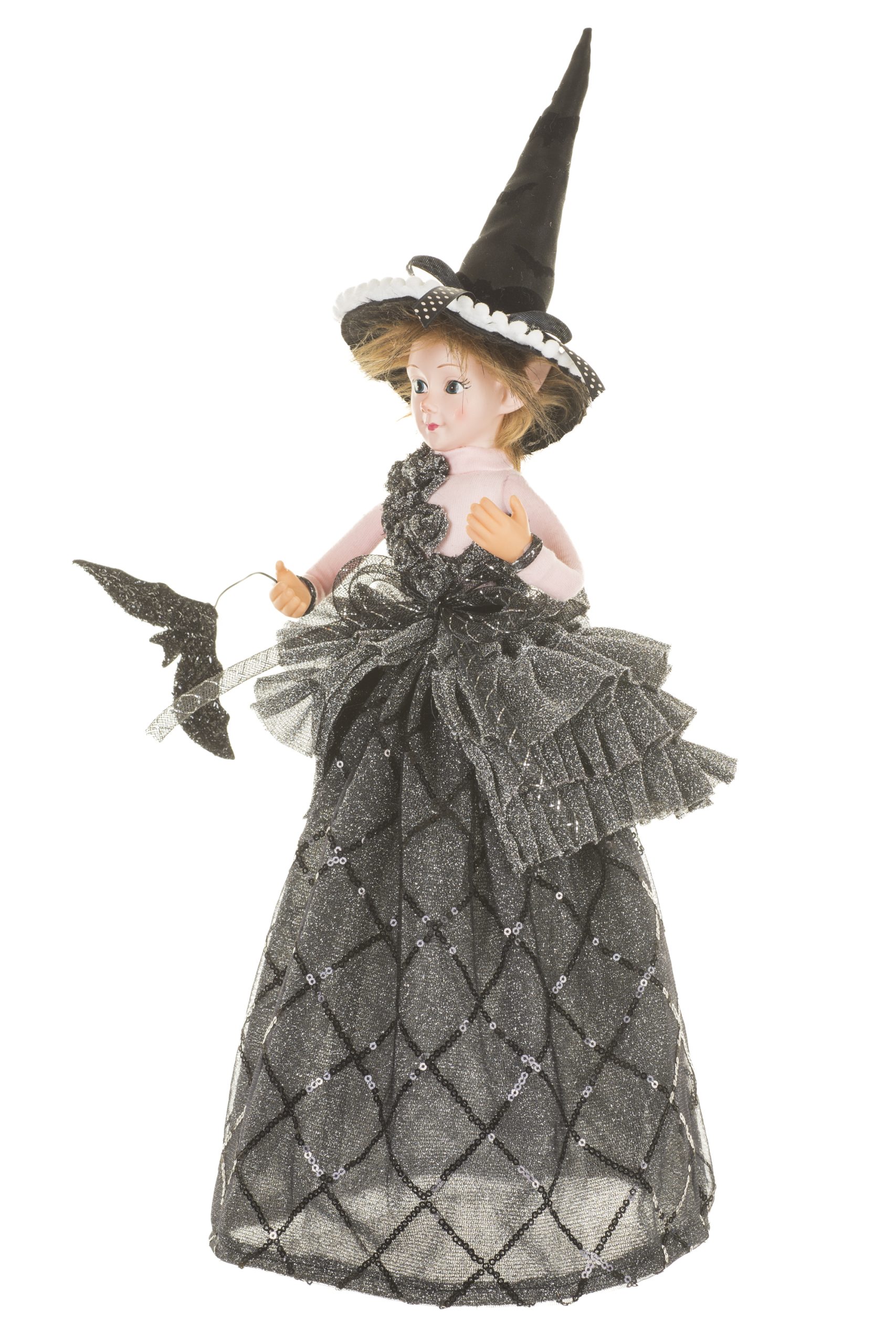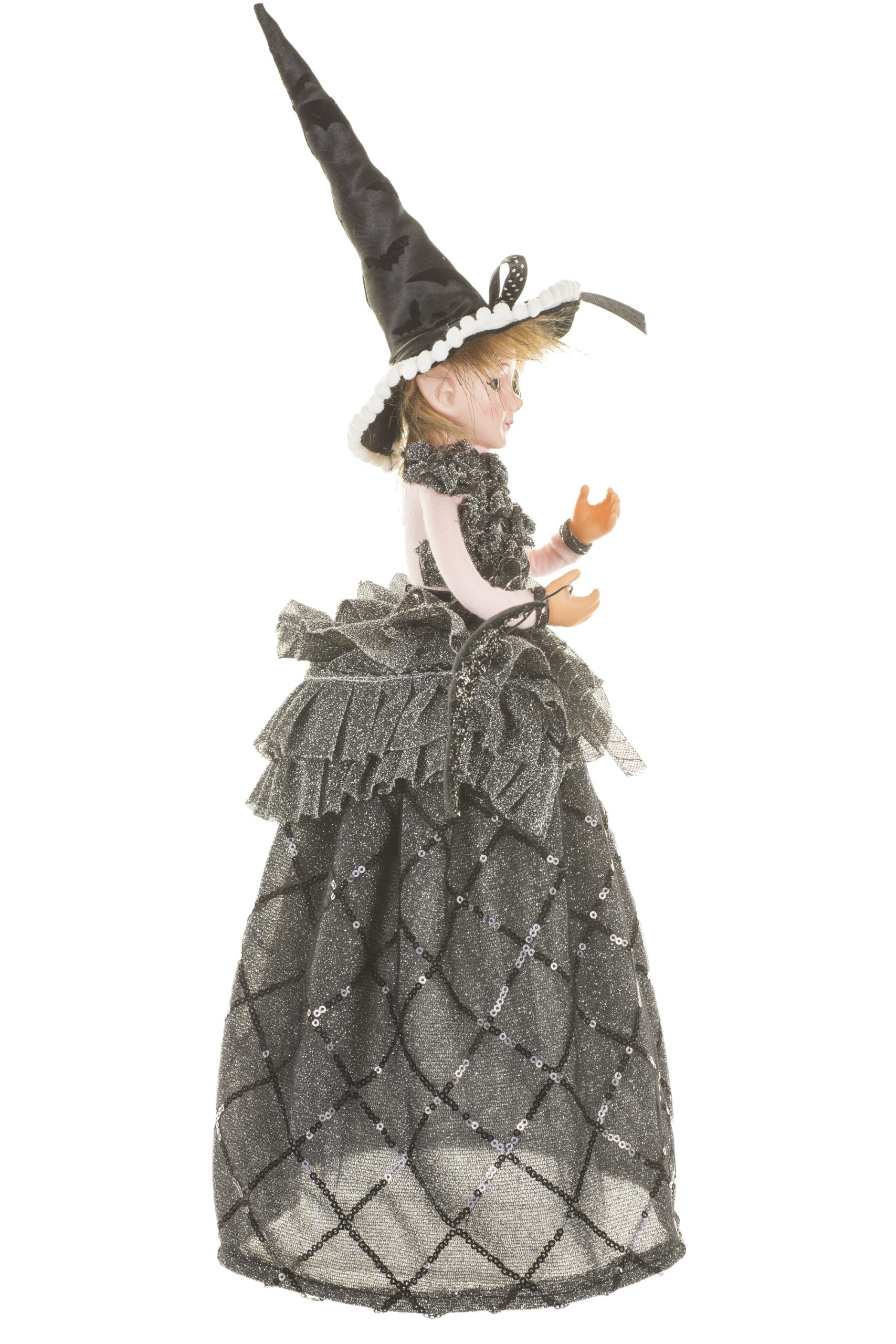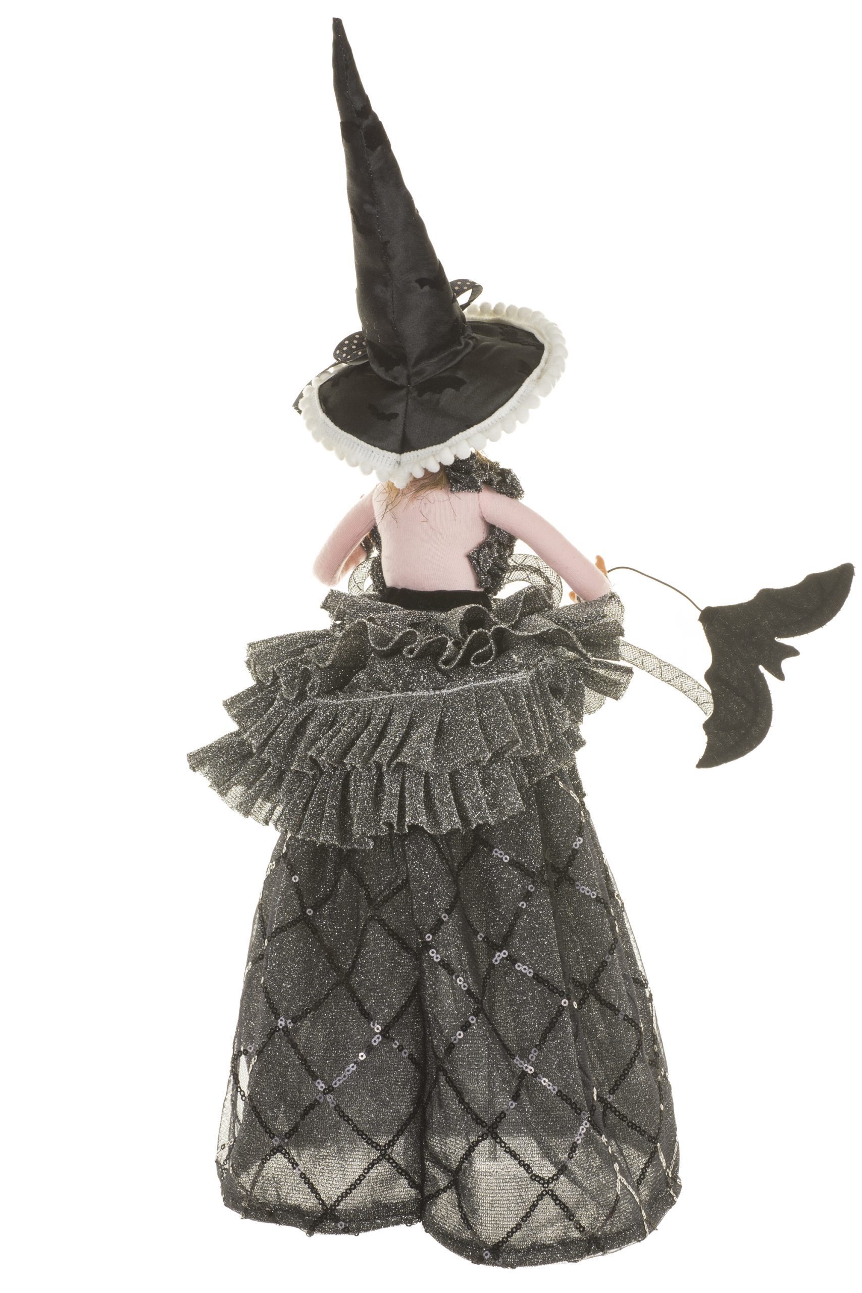 • Description: 21.75" Conal Silver and Peach Plastic Spoonflower Witch Figurine with Bat Companion & Flocked Dress
