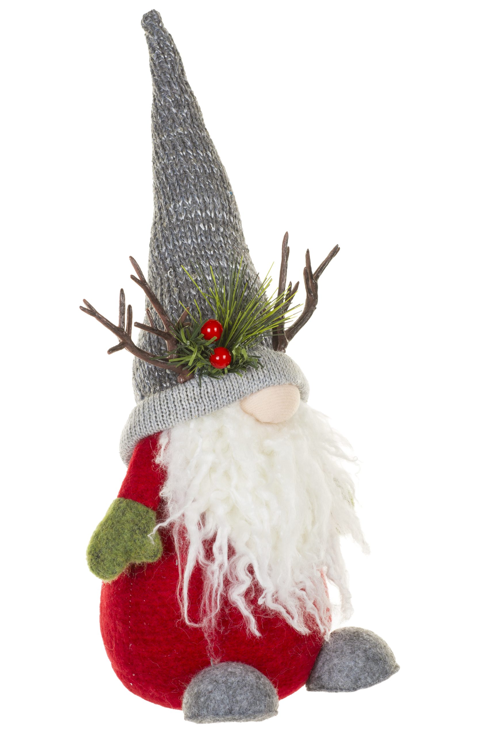 • Description: 13.5" Sitting Red and Grey Fabric Gnome Doll