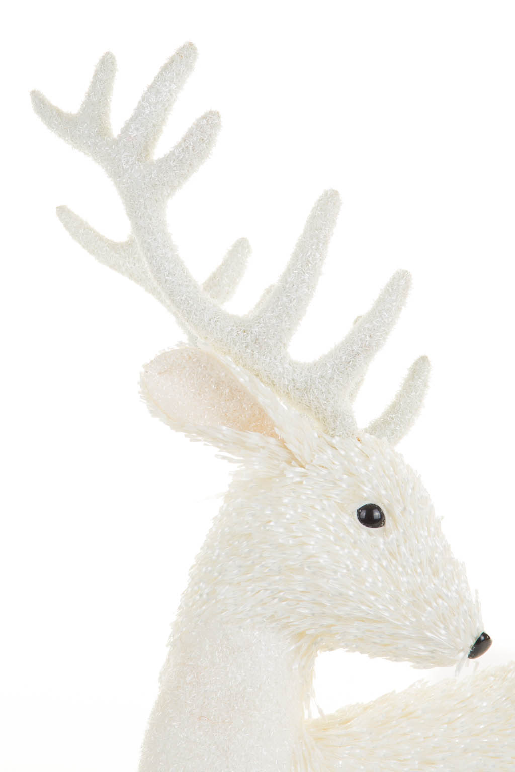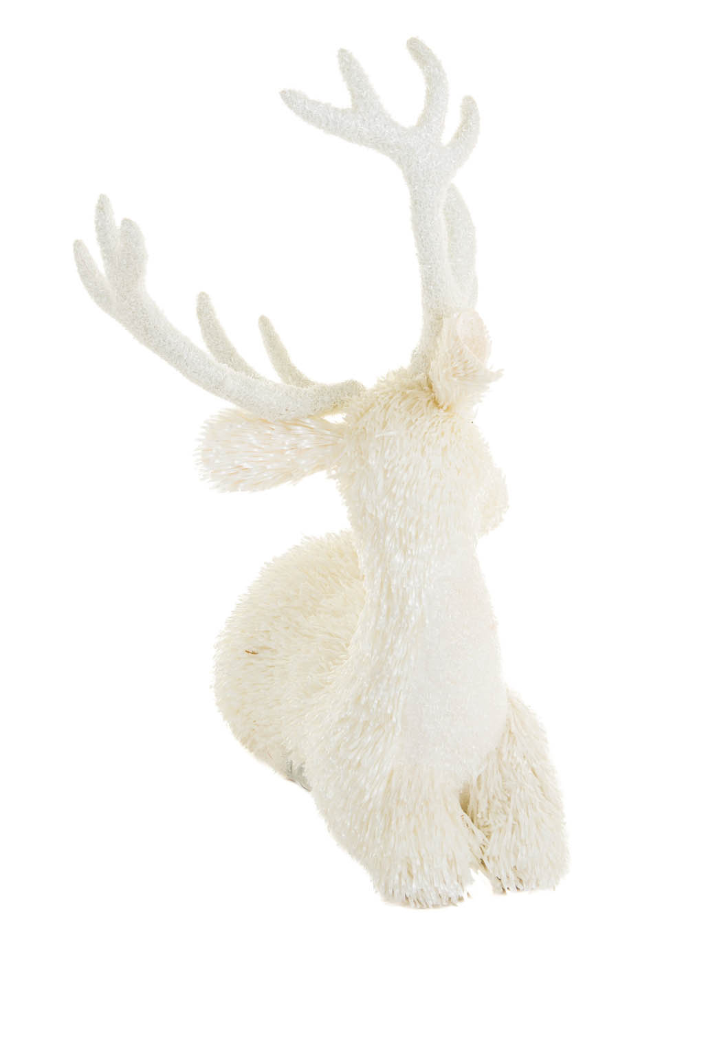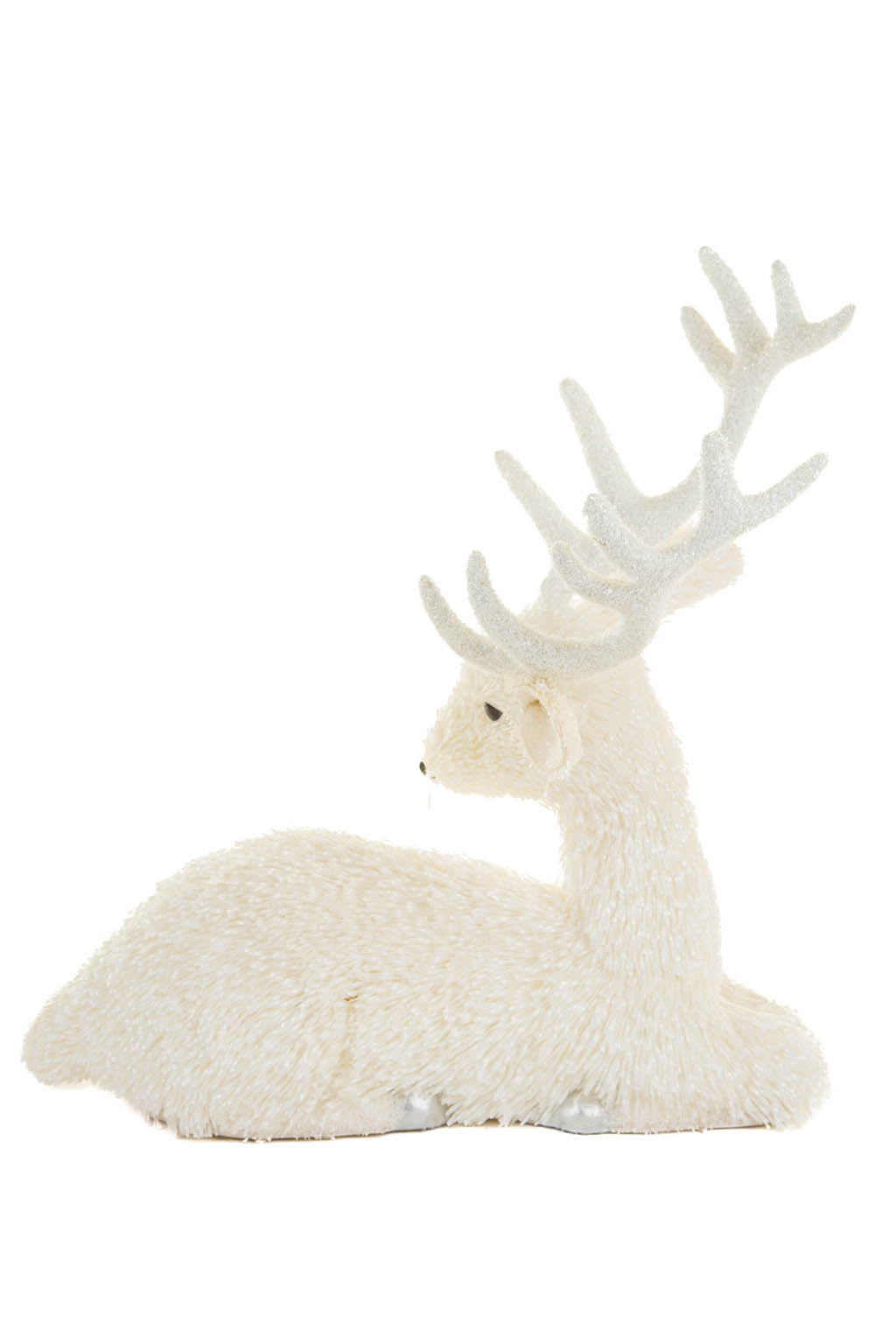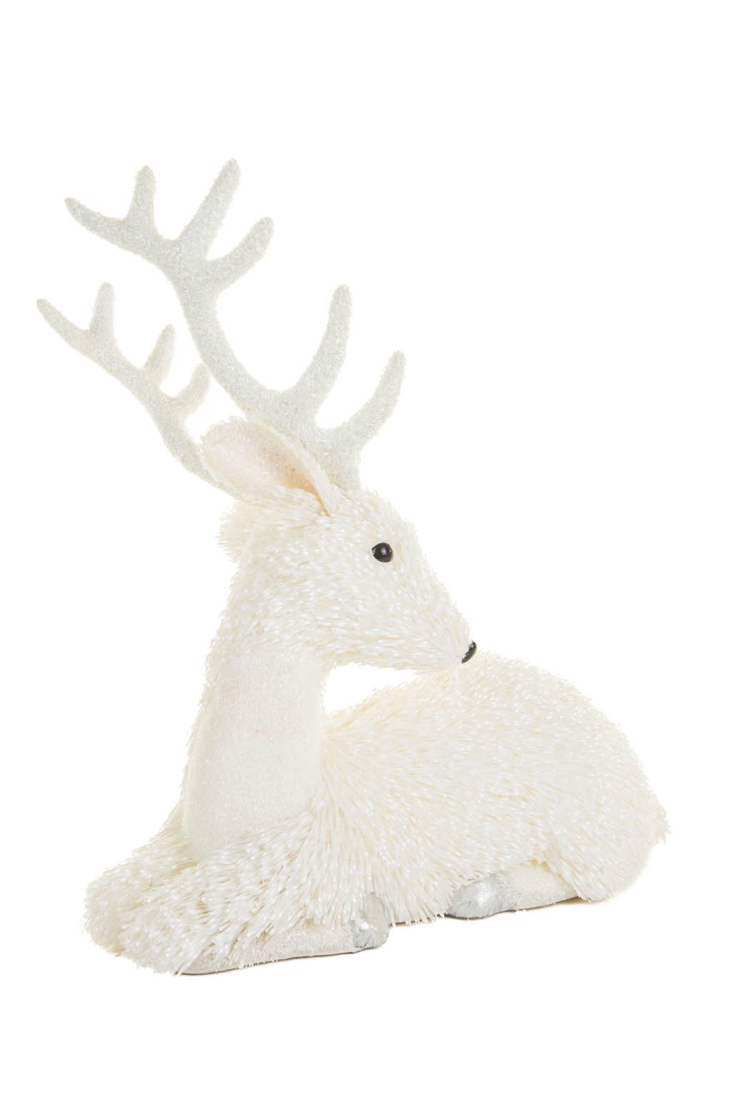 • Description: 16.5" Sitting White Plastic Reindeer Figurine with Silver Hooves