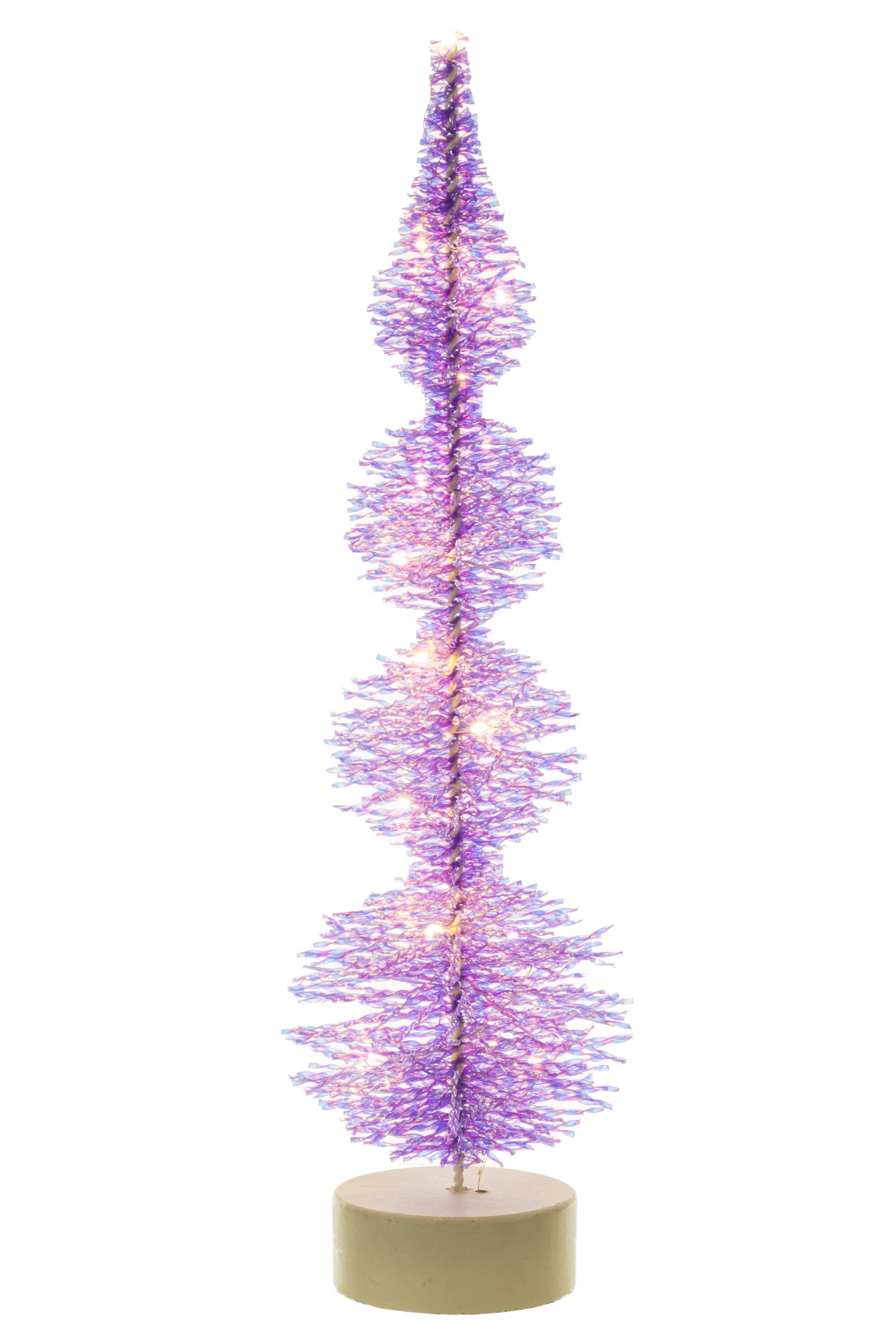 Christmas, more than any other time of year, is a time of cheer and joy. So, in that spirit, why not lighten up your home and bring some holiday whimsy this year with our charming LED Table-top Twined Bristle Tree Accent from our Accents collection? Add a touch of class With Our Purple And Iridescent Tree Display, which really adds a touch of whimsy but a little bit extra.