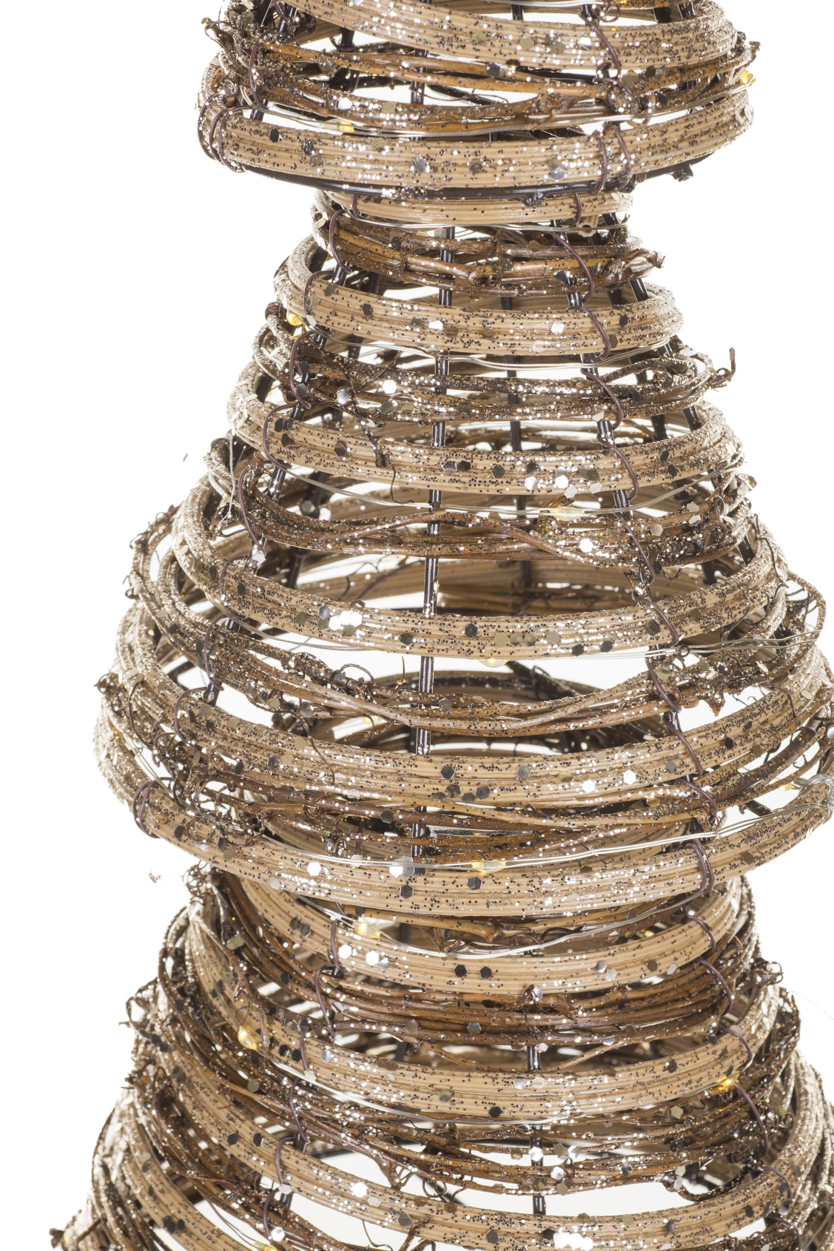 • Description: 20" Glittery Umber Plastic Tiered Warm White LED Accent Tree with Star Topper