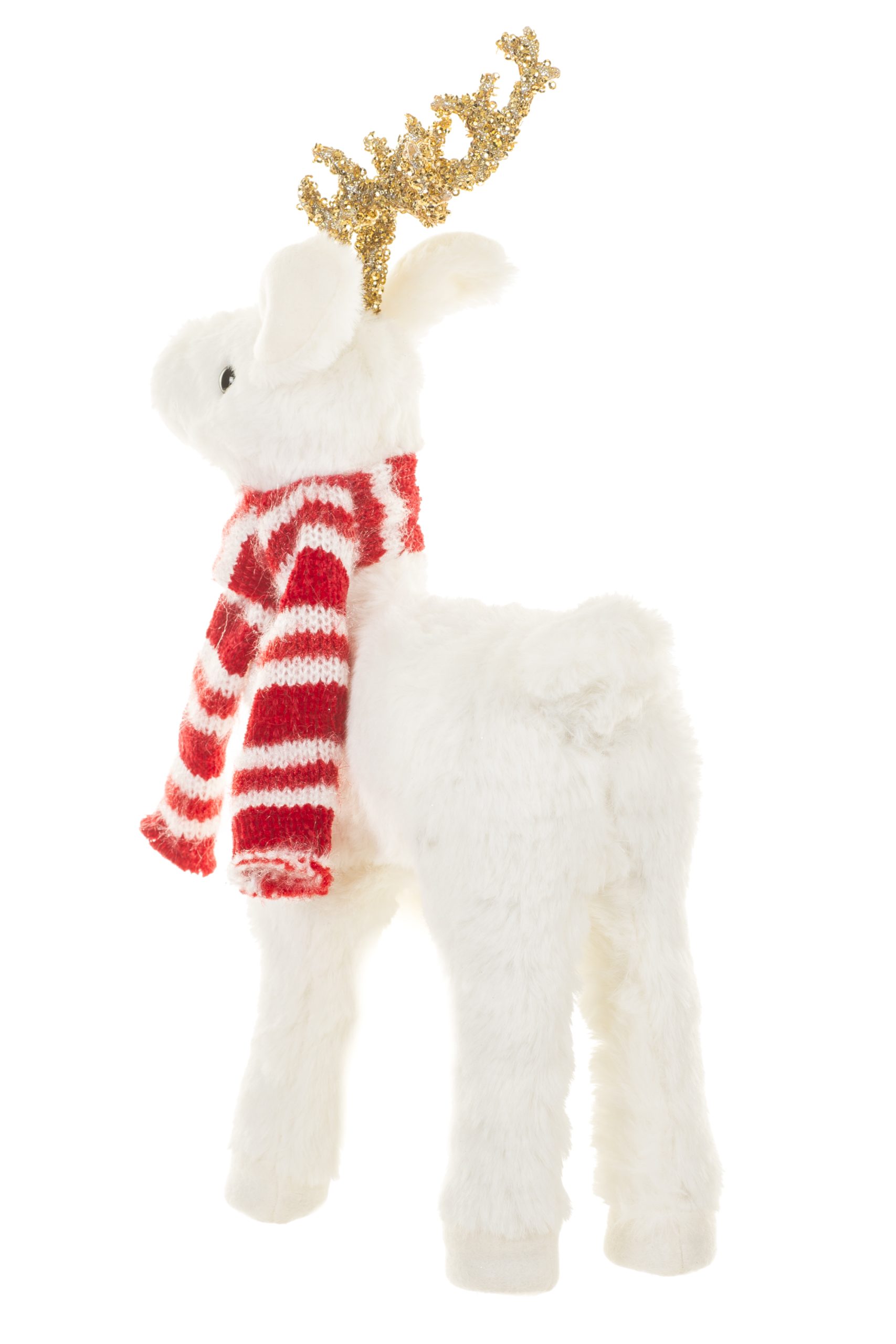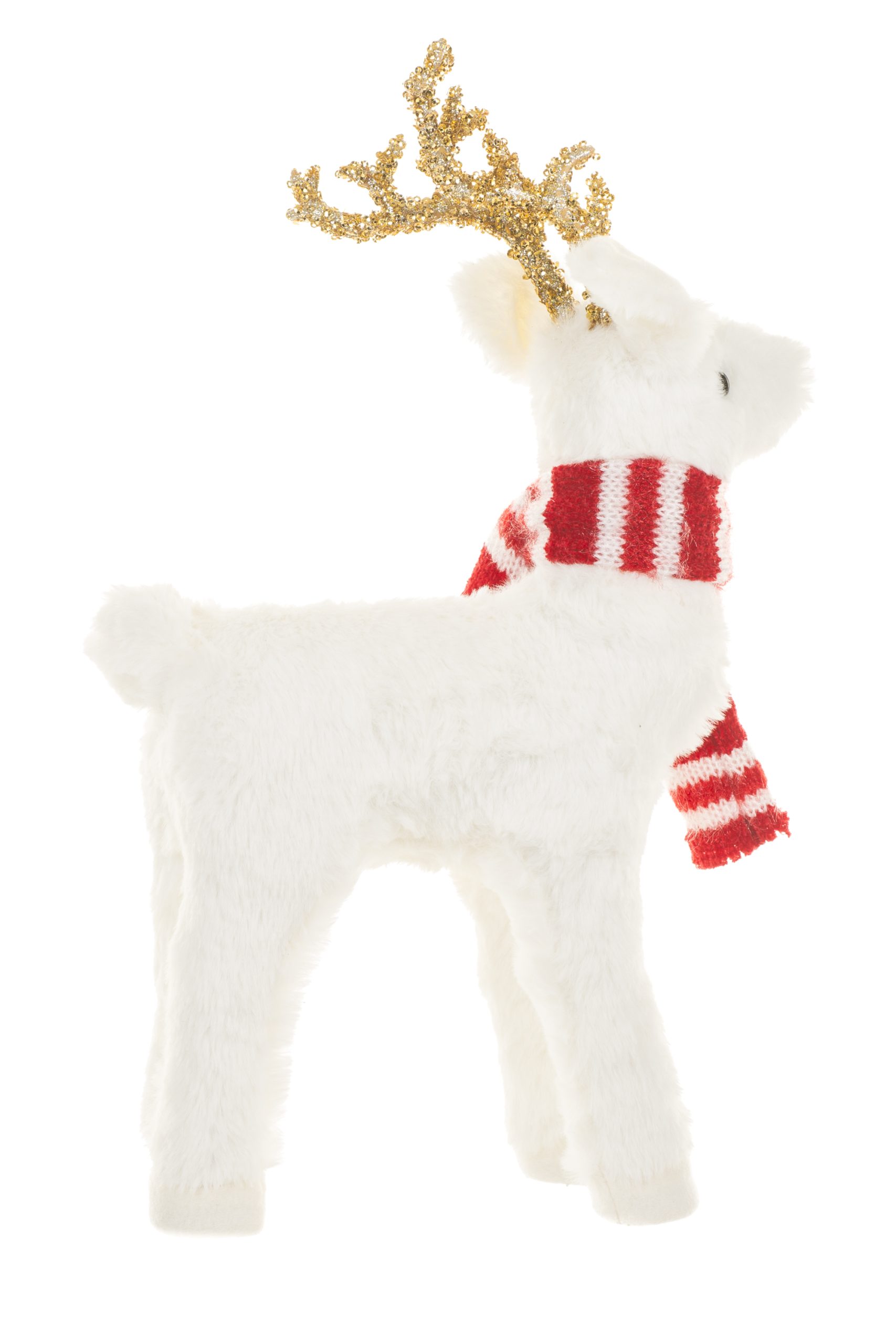 • Description: 16" White and Red Fabric Baby Deer Figurine with Striped Scarf