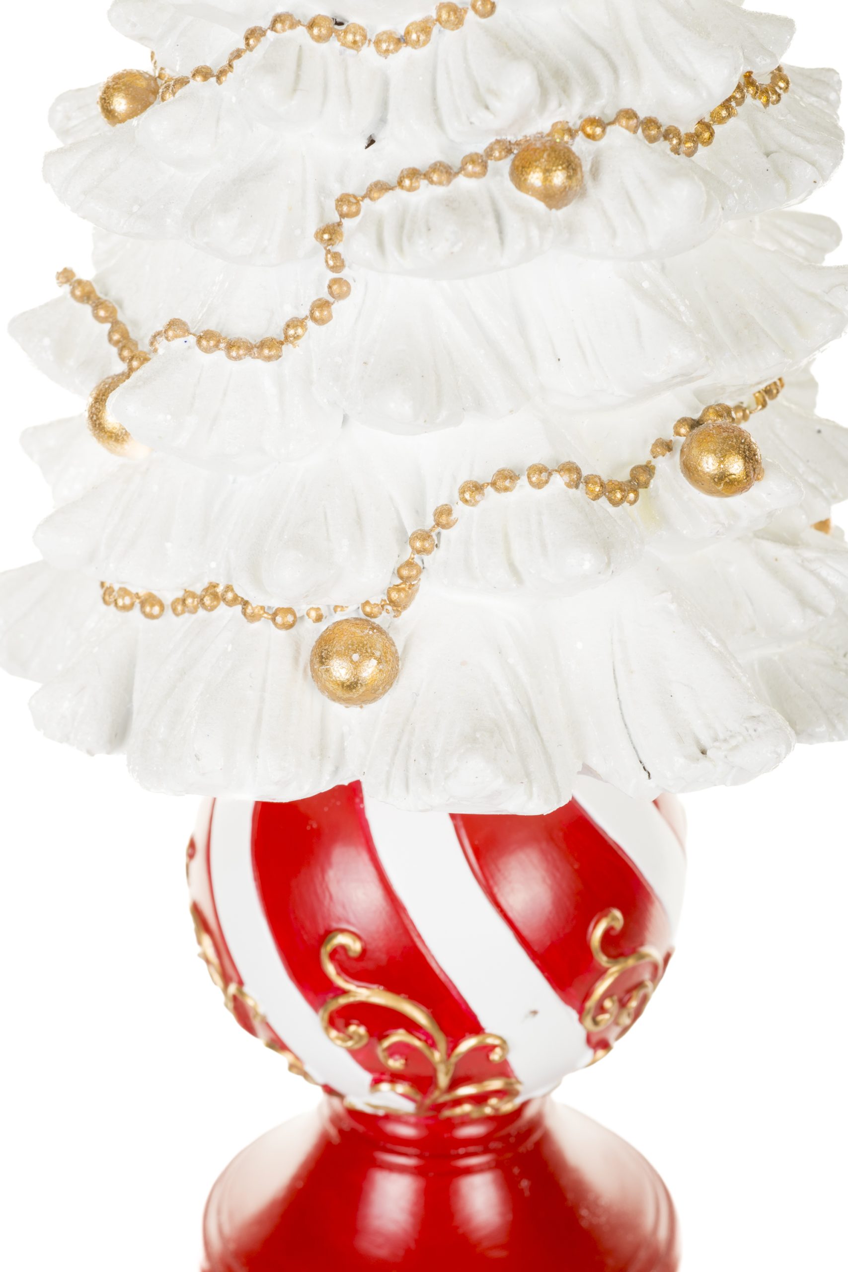 • Description: 17" White and Red Resin Christmas Tree Accent with Gold Ornaments & Star