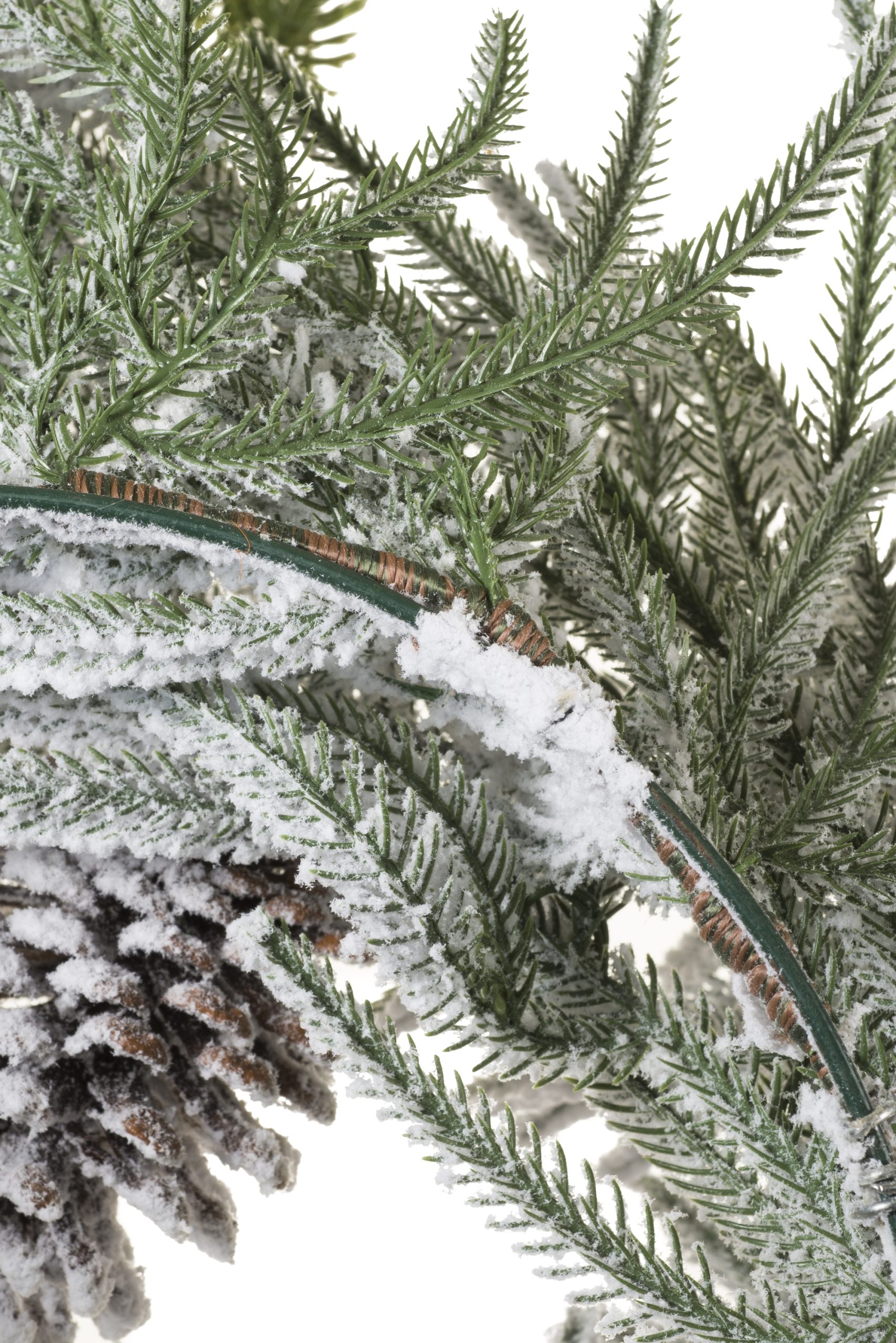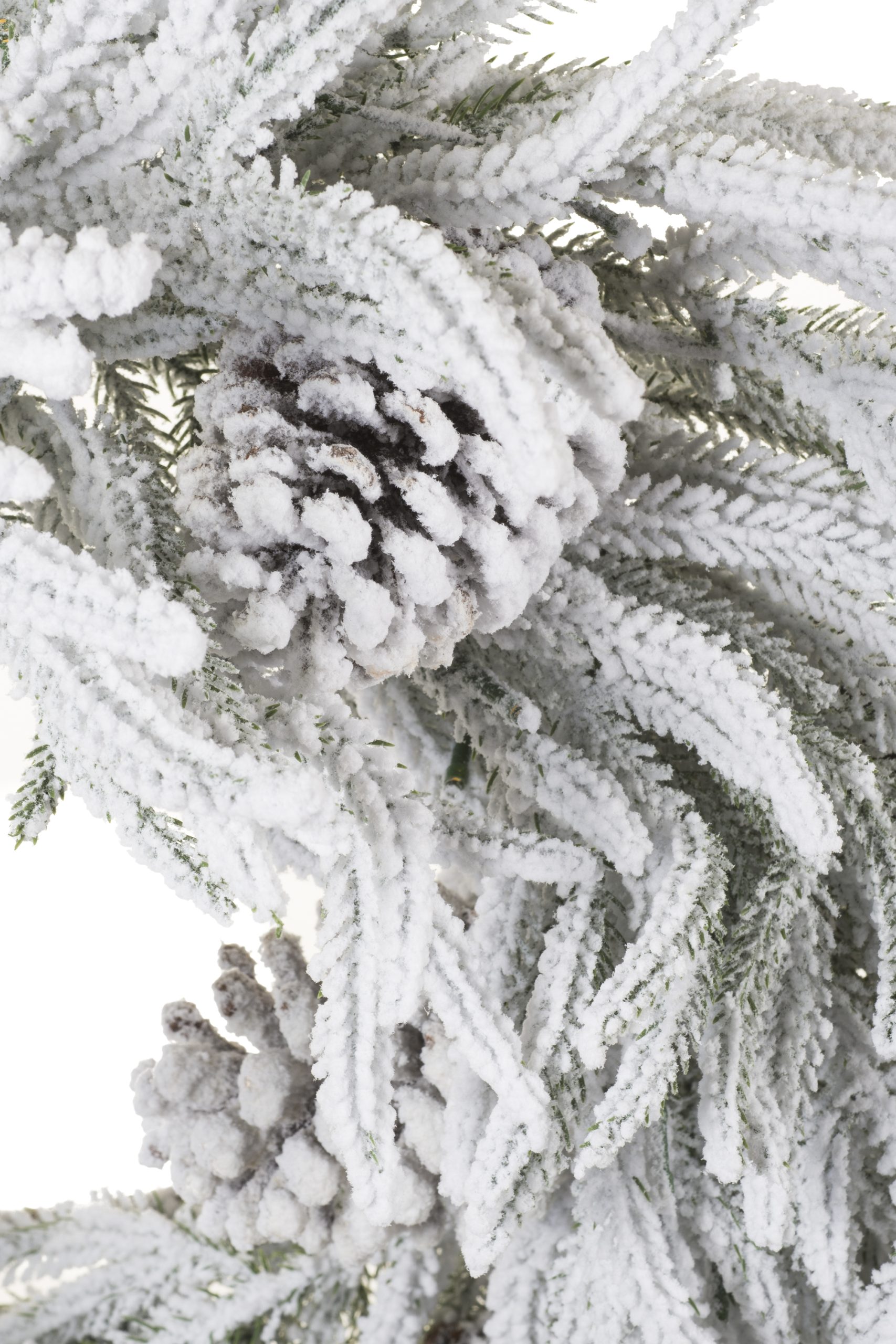 • Description: 33" Flocked White and Green Plastic Warm White LED Wreath with Pinecones