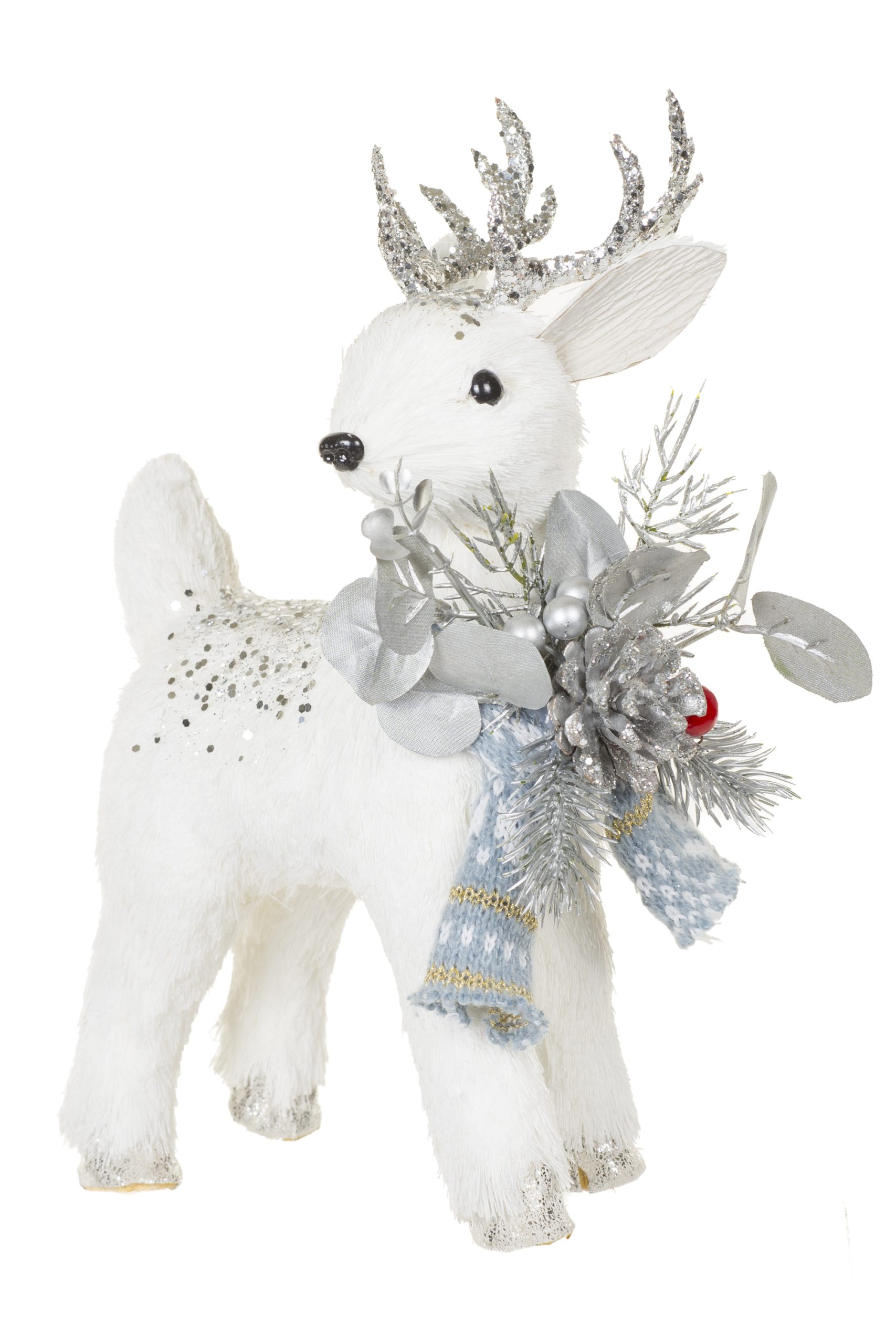White Reindeer With Blue Scarf