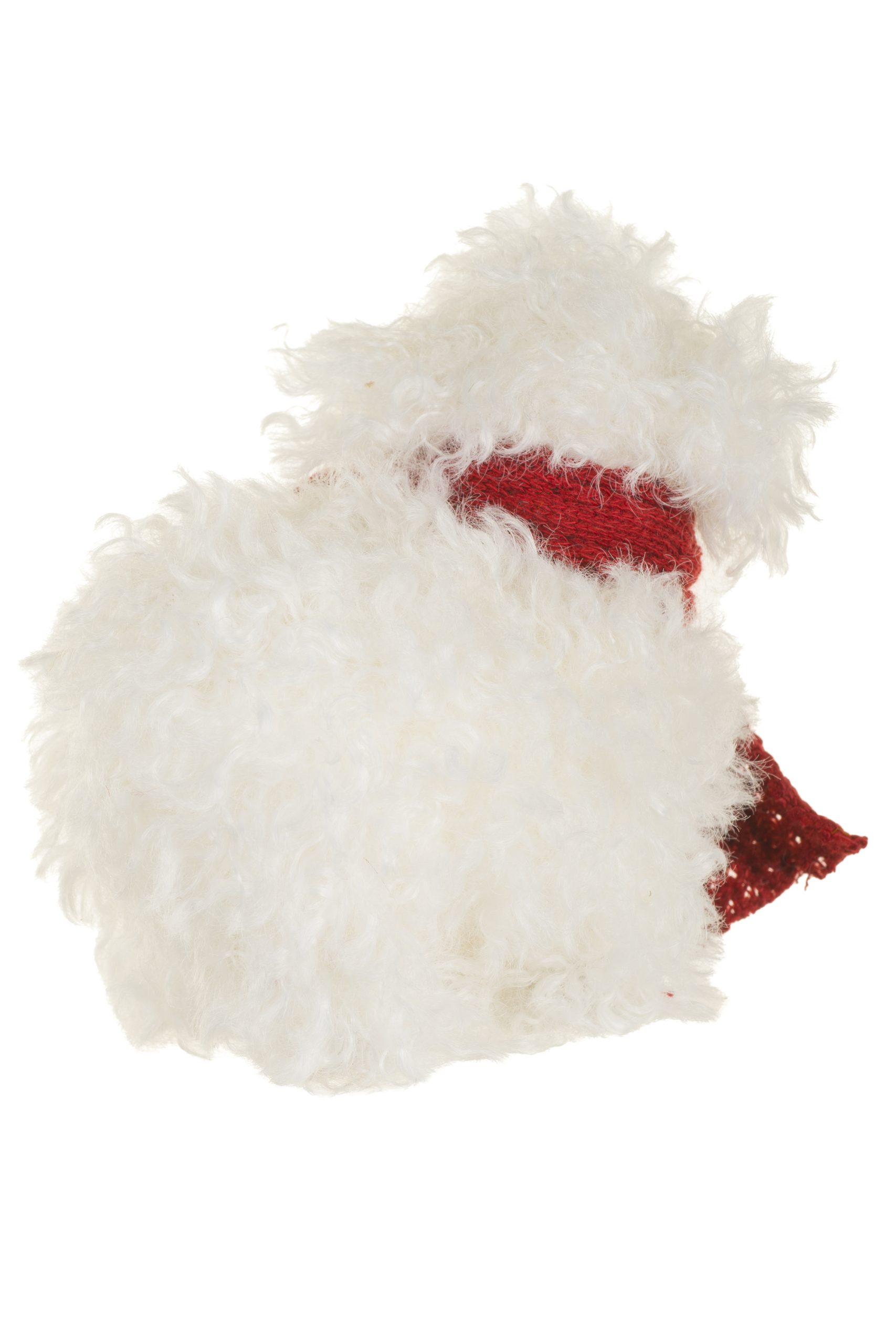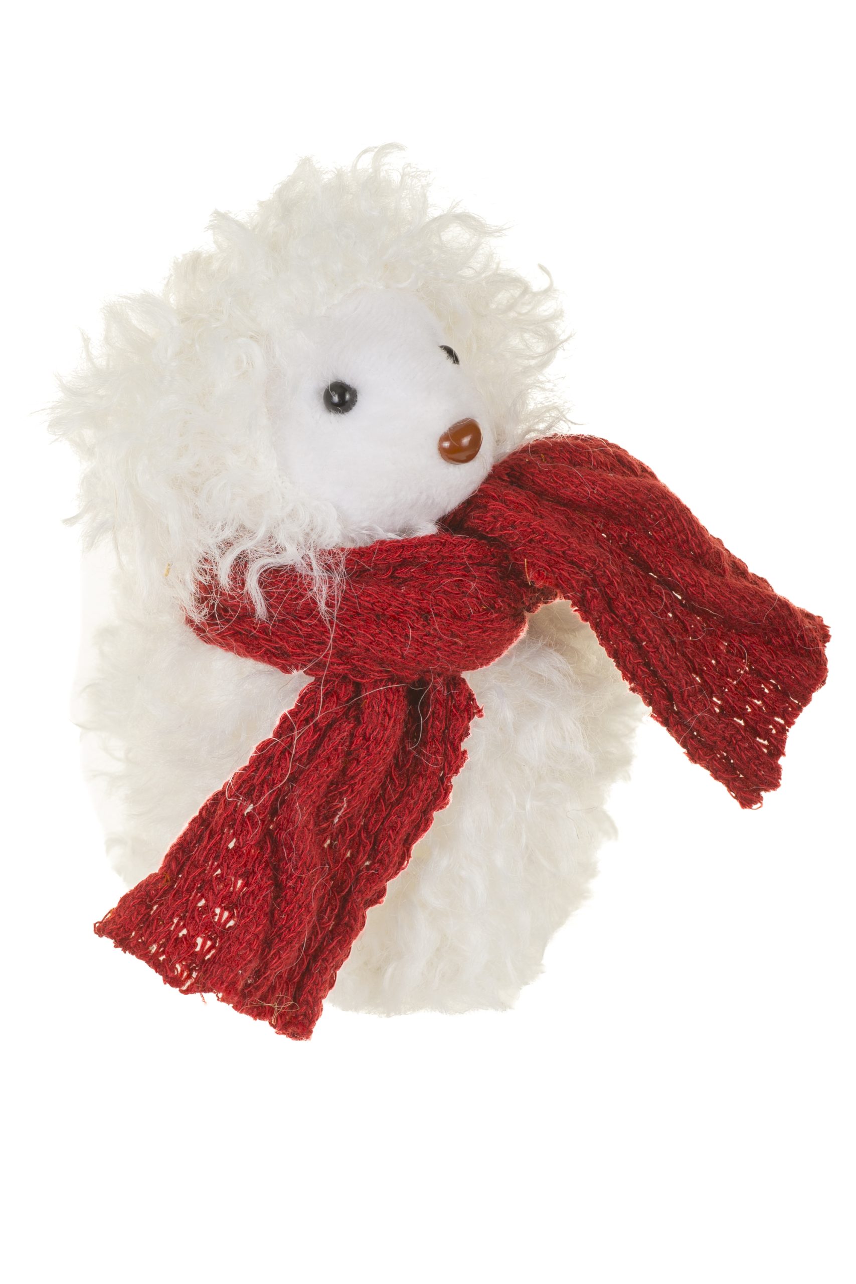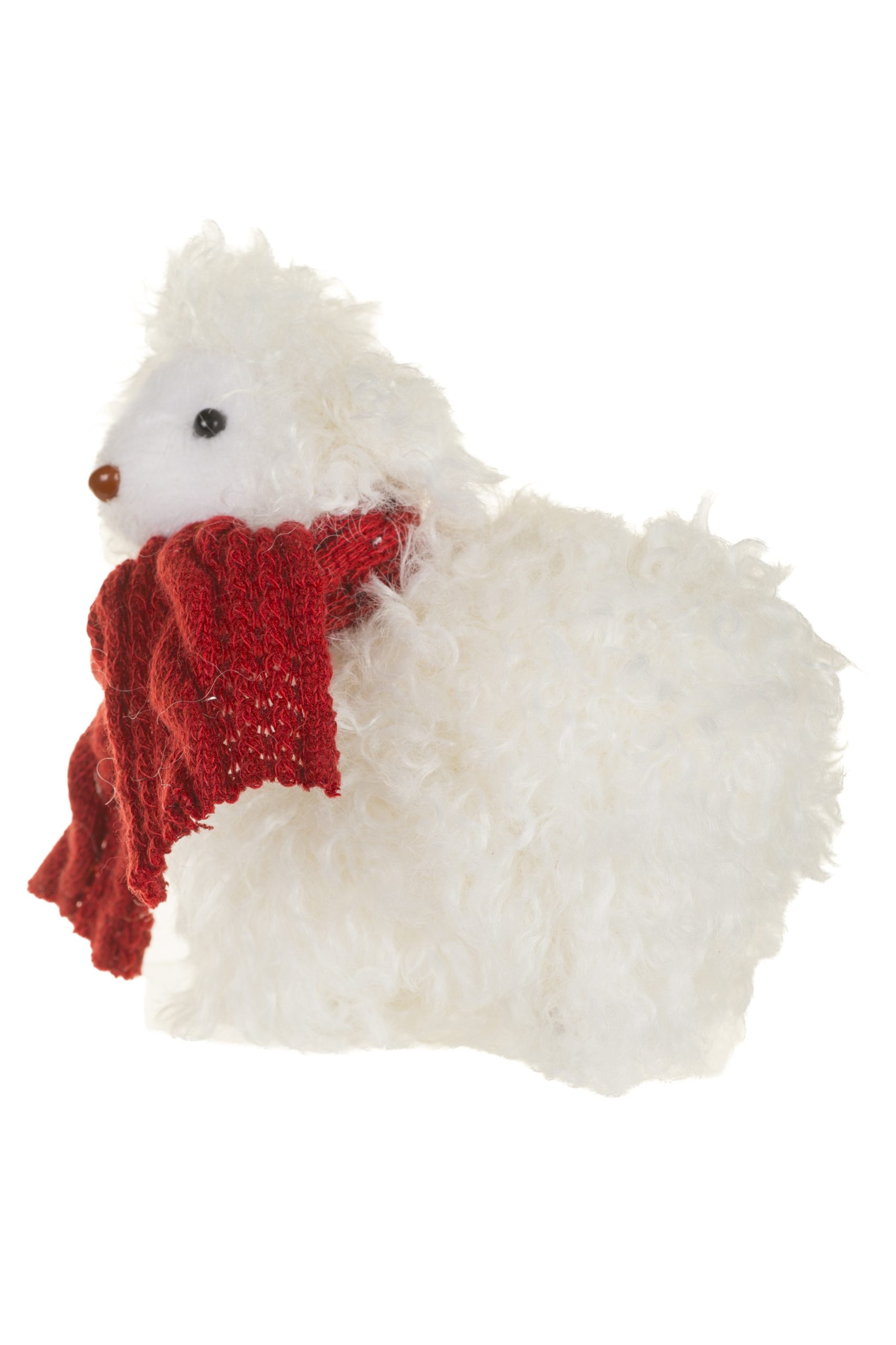 • Description: 4.92" White and Red Fabric Sheep Figurine Wearing Thich Burgundy Scarf