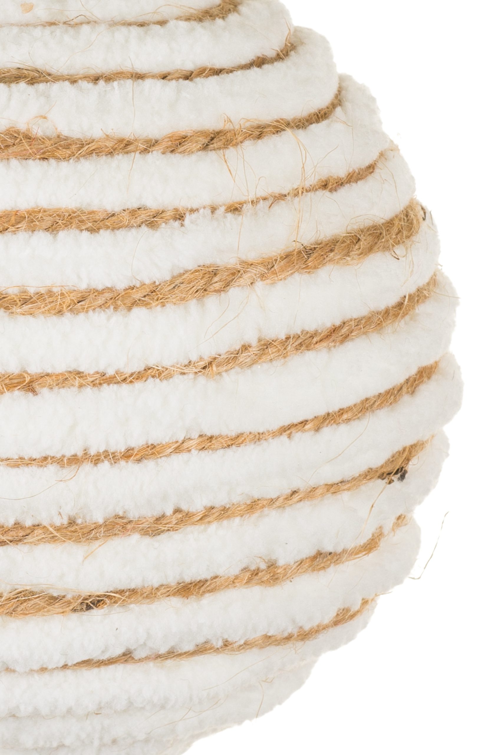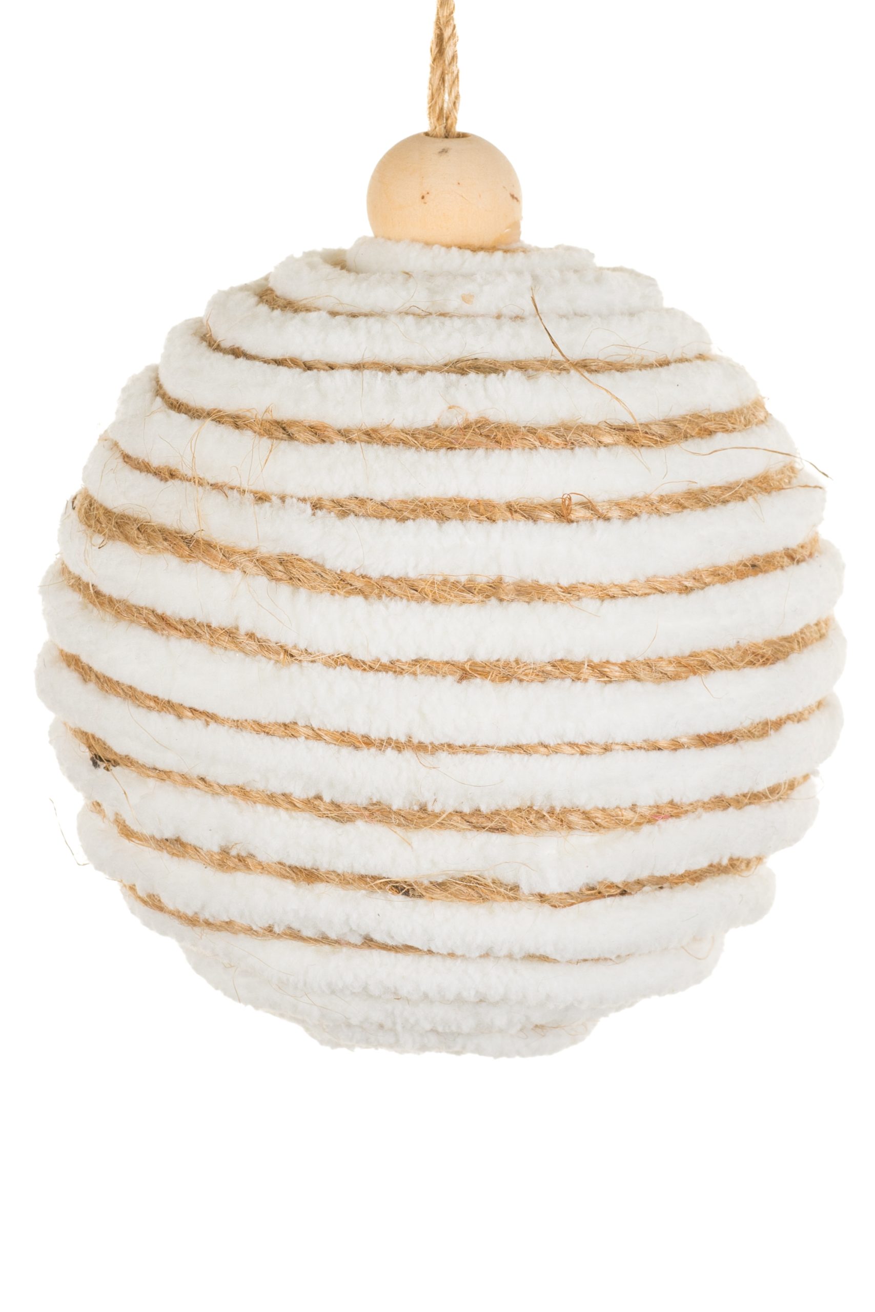 • Description: 4.75" White Cloth Spiral Ball Ornament with Twine Loop