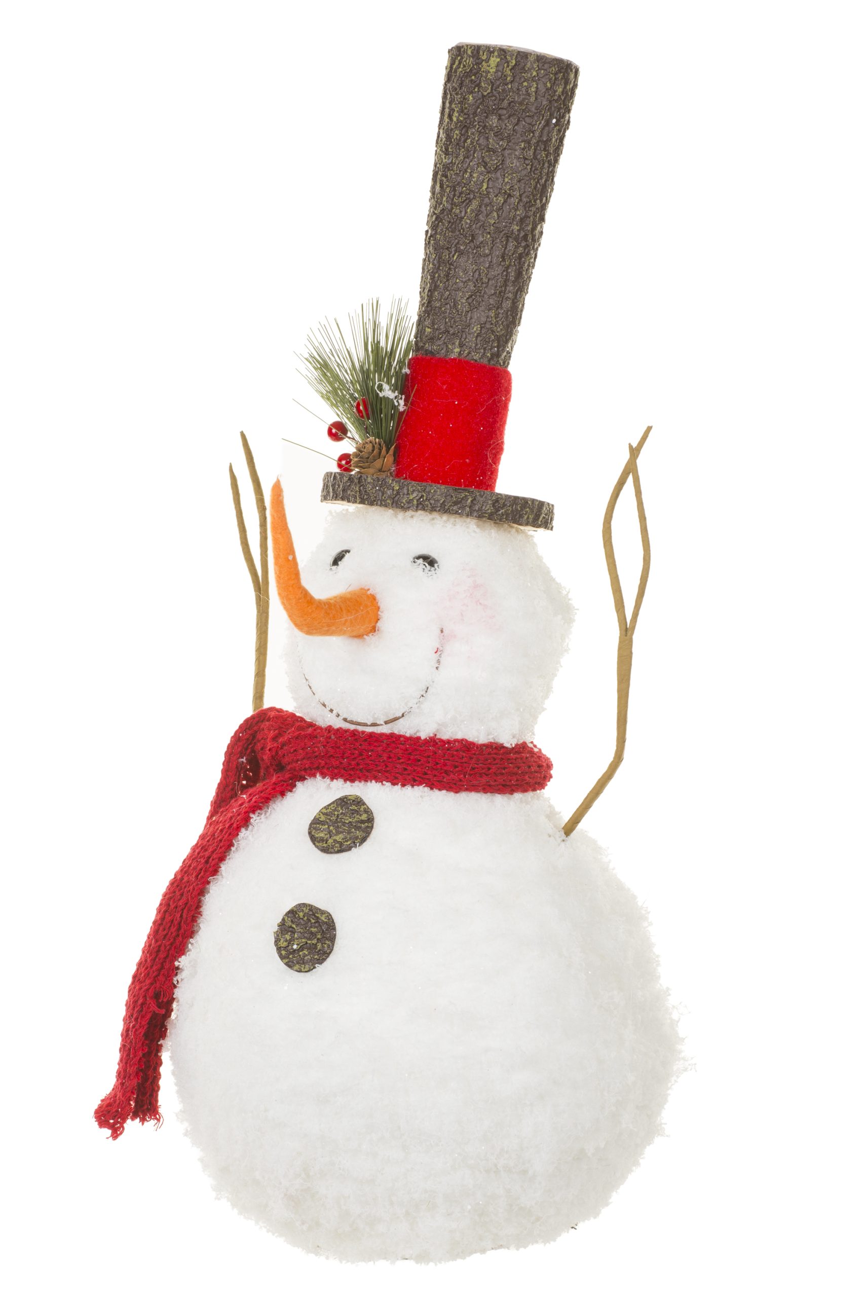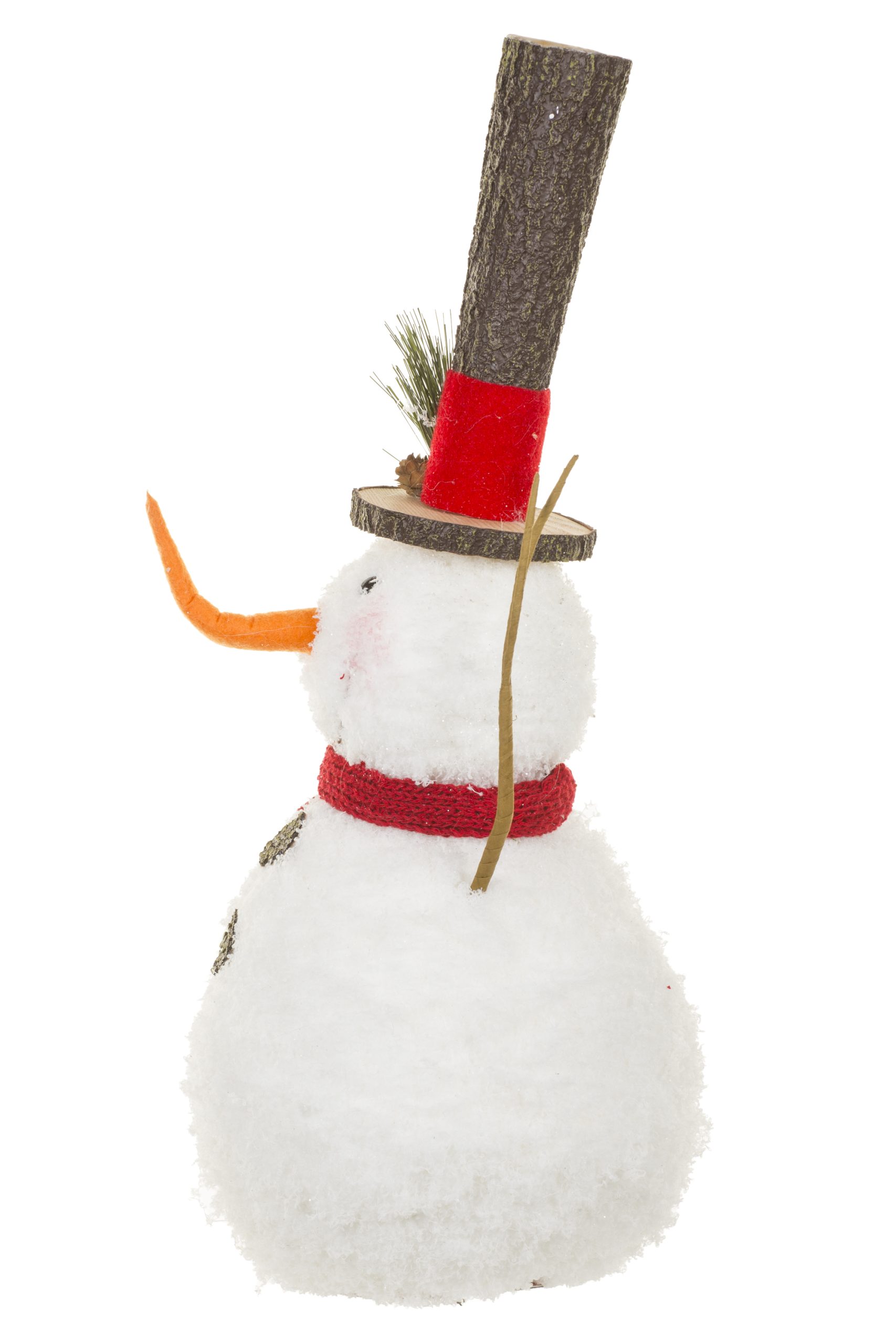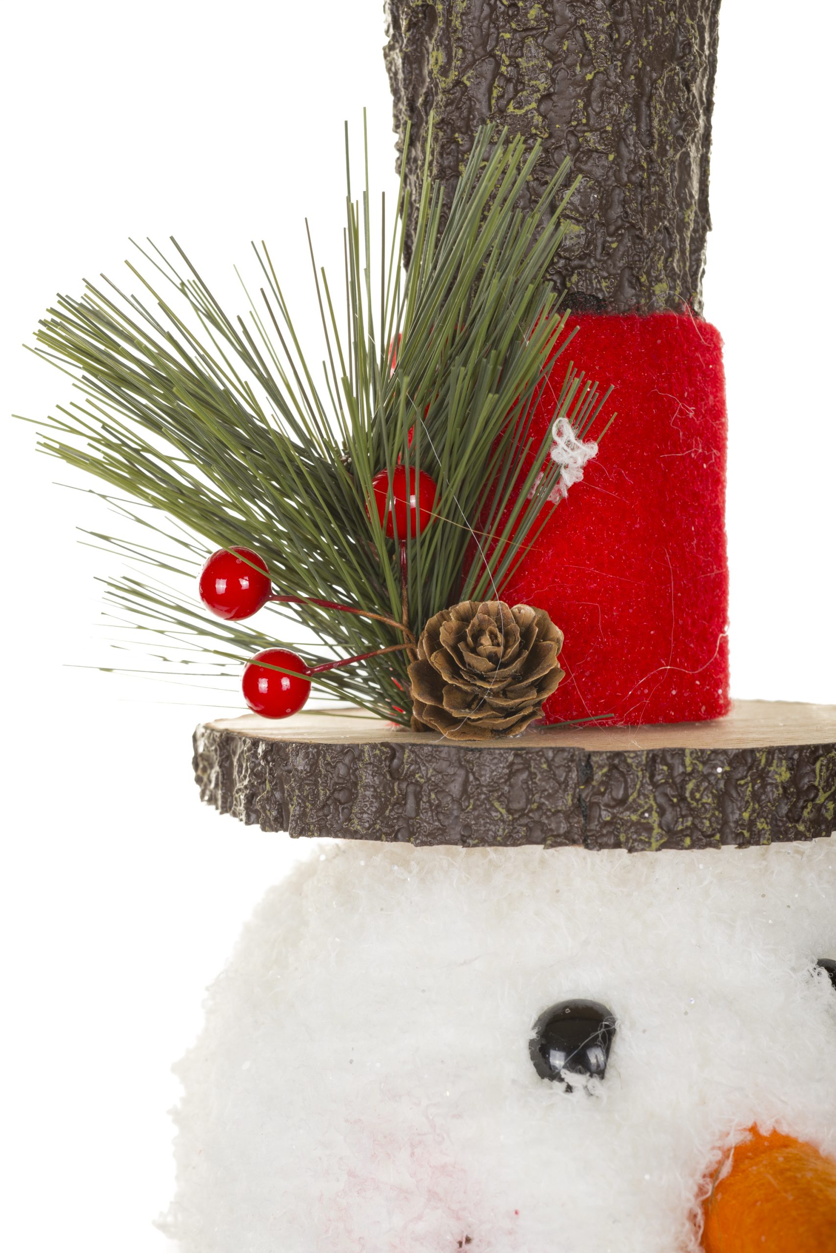 • Description: 21.65" White and Red Fabric Woodsey Snowman Figurine with Thin Pointed Top Hat & Red Scarf