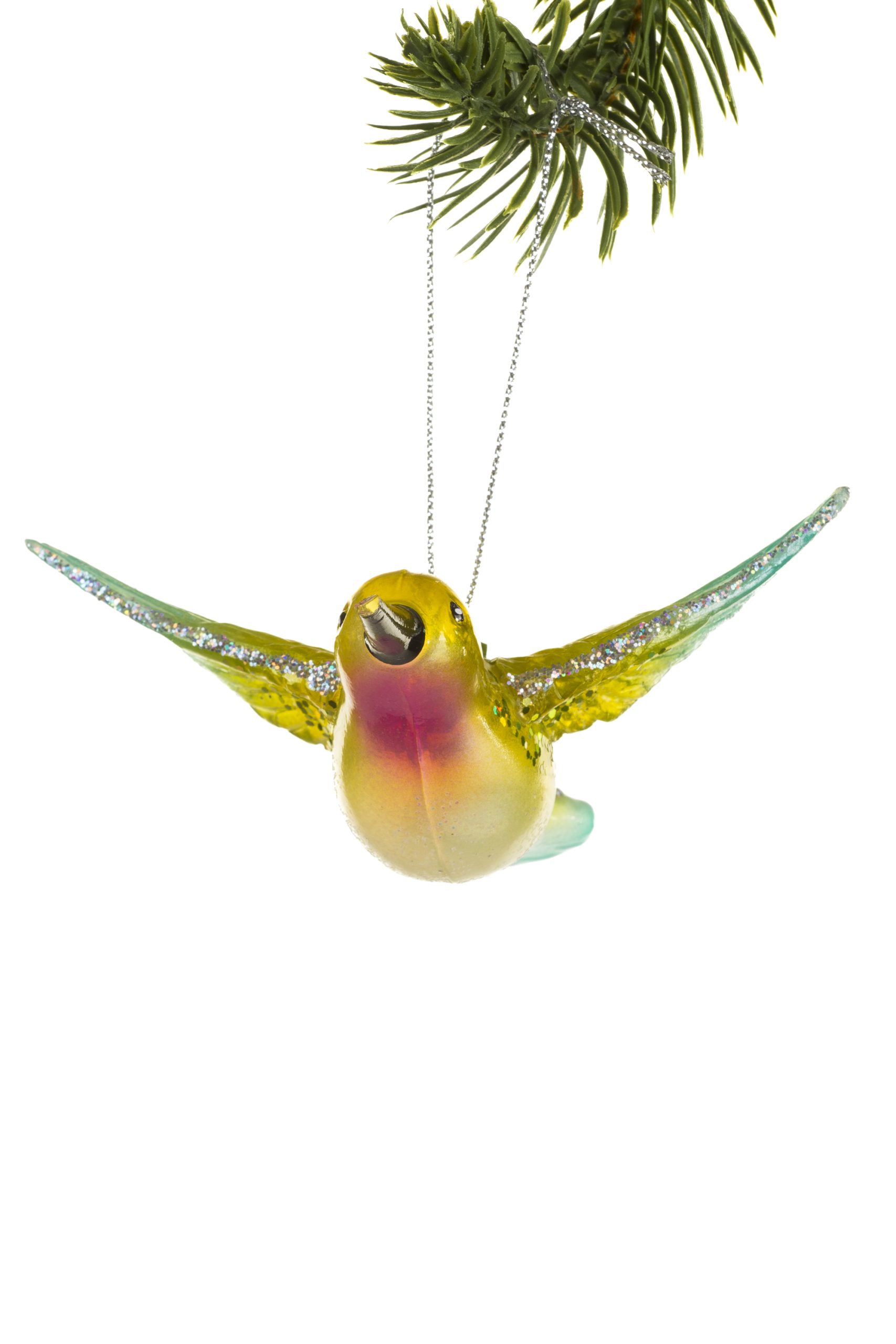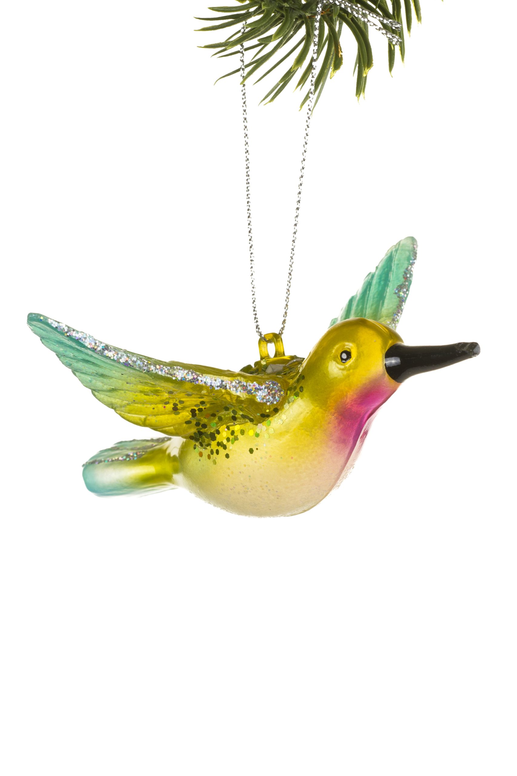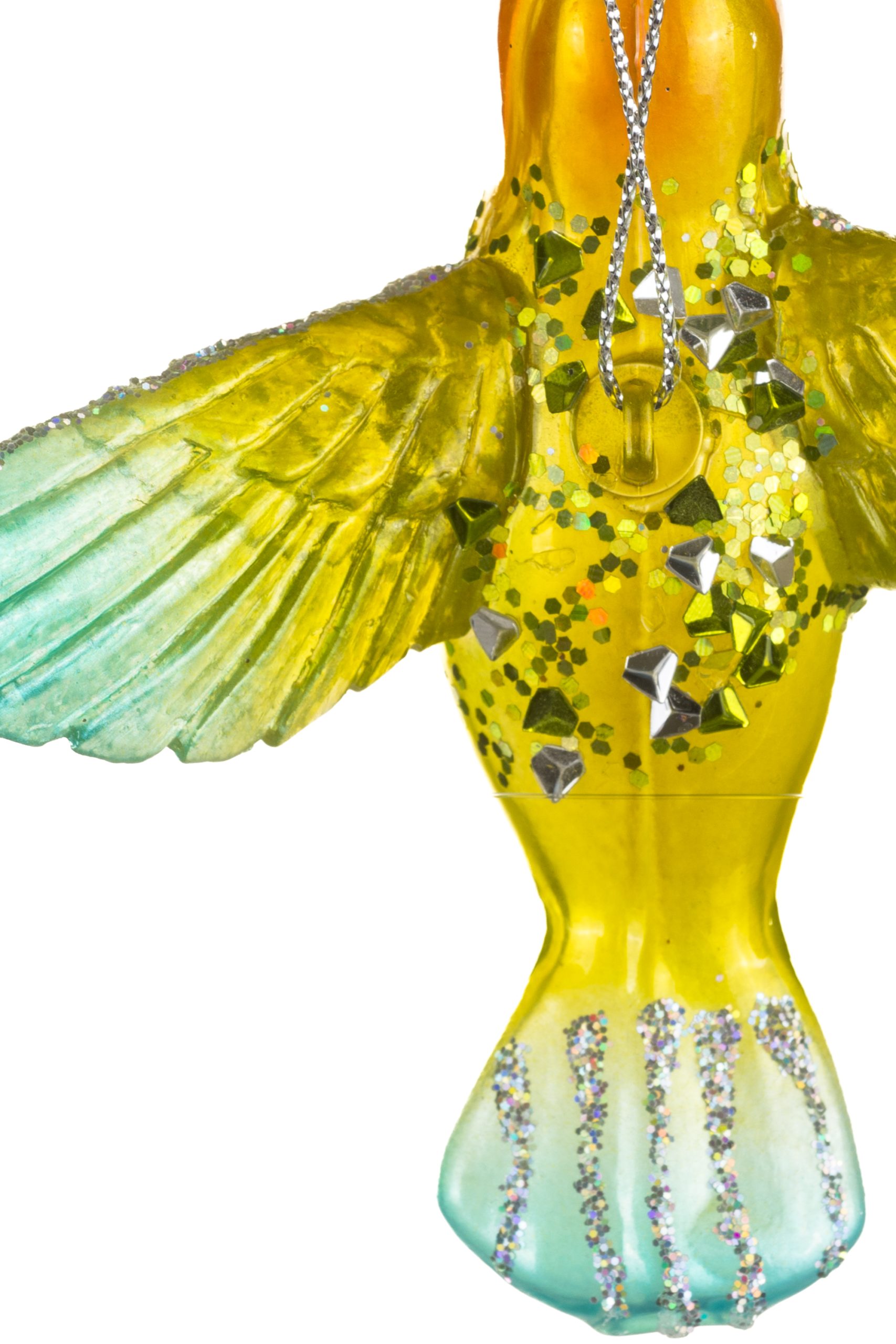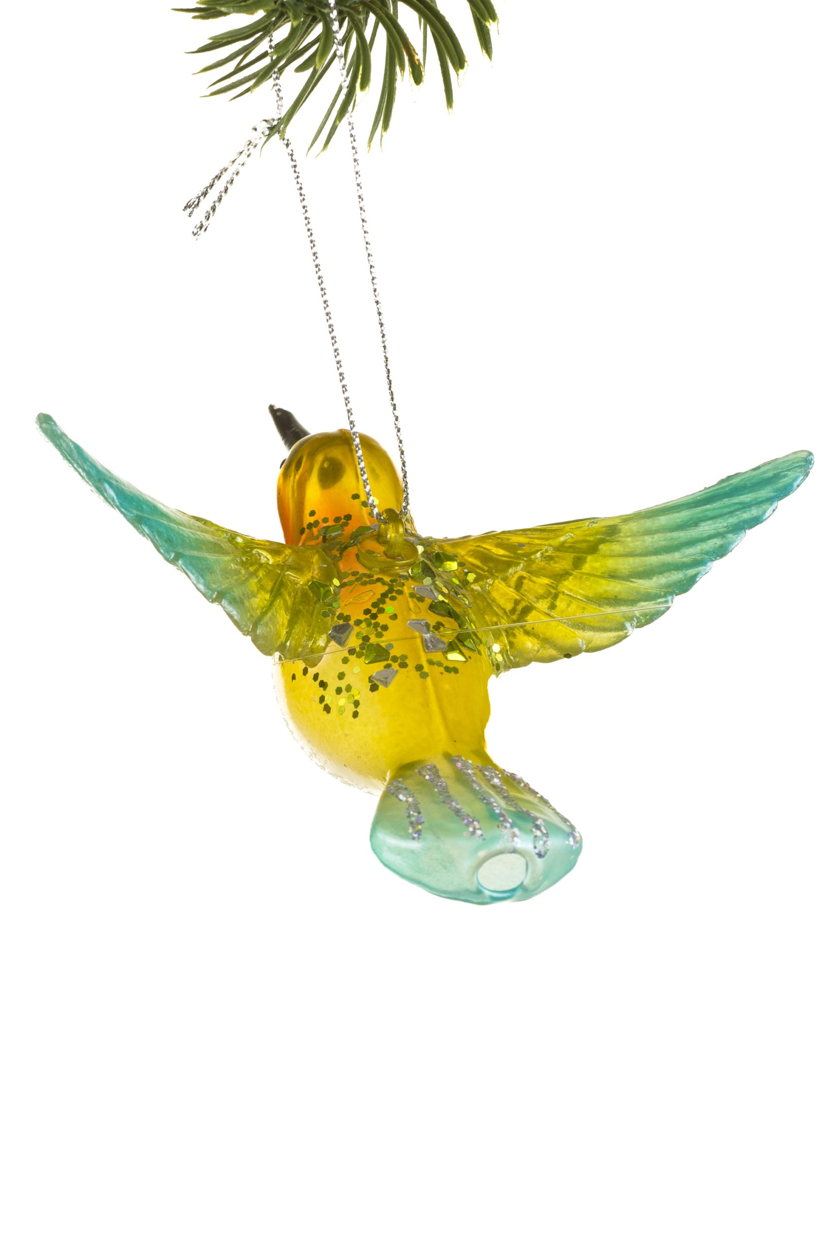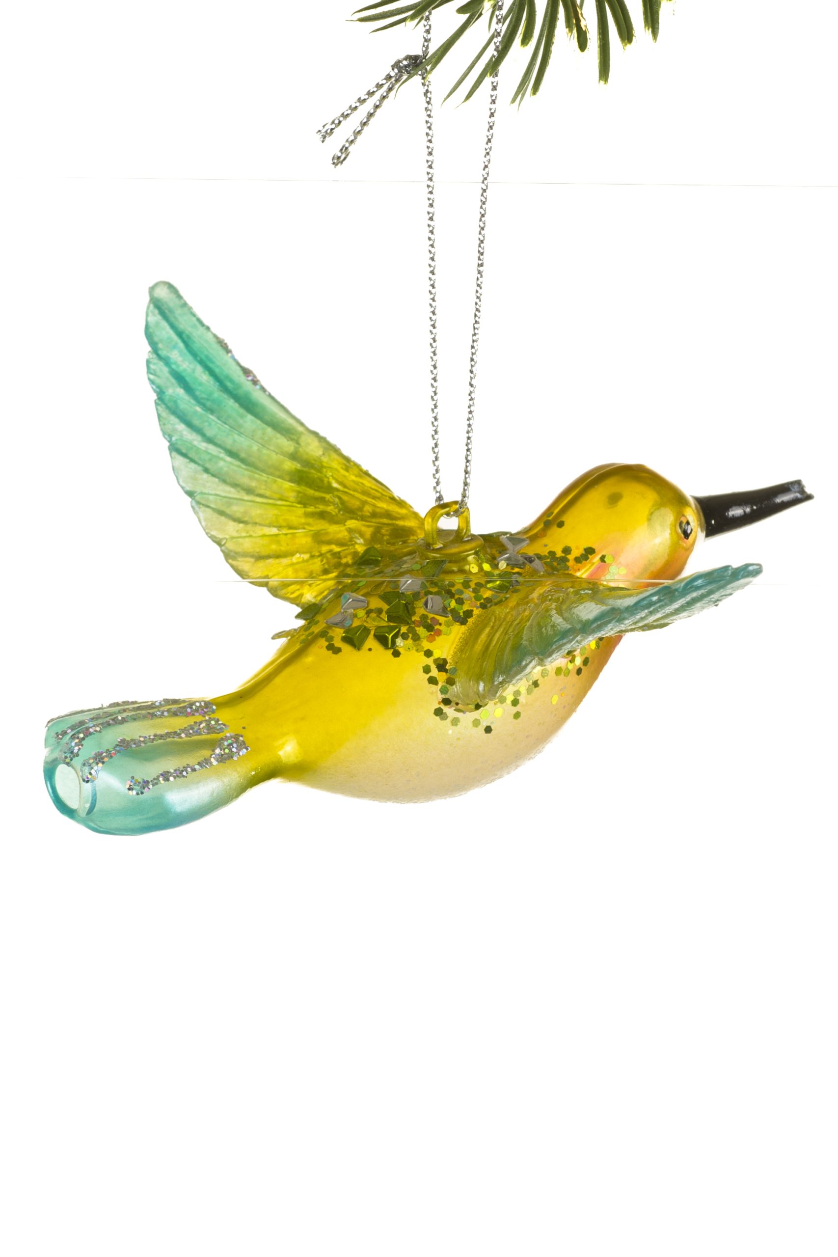 • Description: 4.5" Glittery Yellow and Blue Glass Hummingbird Ornament